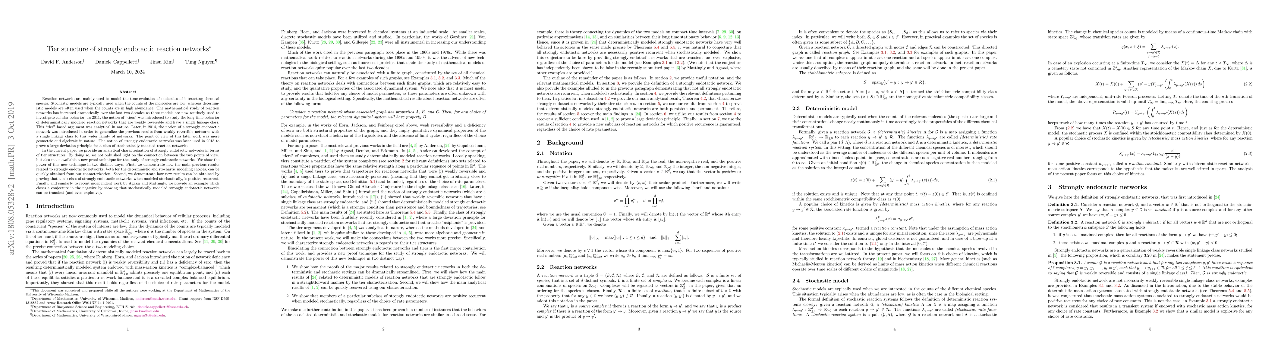 Reaction networks are mainly used to model the time-evolution of molecules of interacting chemical species. Stochastic models are typically used when the counts of the molecules are low, whereas deterministic models are used when the counts are in high abundance. In 2011, the notion of `tiers' was introduced to study the long time behavior of deterministically modeled reaction networks that are weakly reversible and have a single linkage class. This `tier' based argument was analytical in nature. Later, in 2014, the notion of a strongly endotactic network was introduced in order to generalize the previous results from weakly reversible networks with a single linkage class to this wider family of networks. The point of view of this later work was more geometric and algebraic in nature. The notion of strongly endotactic networks was later used in 2018 to prove a large deviation principle for a class of stochastically modeled reaction networks. We provide an analytical characterization of strongly endotactic networks in terms of tier structures. By doing so, we shed light on the connection between the two points of view, and also make available a new proof technique for the study of strongly endotactic networks. We show the power of this new technique in two distinct ways. First, we demonstrate how the main previous results related to strongly endotactic networks, both for the deterministic and stochastic modeling choices, can be quickly obtained from our characterization. Second, we demonstrate how new results can be obtained by proving that a sub-class of strongly endotactic networks, when modeled stochastically, is positive recurrent. Finally, and similarly to recent independent work by Agazzi and Mattingly, we provide an example which closes a conjecture in the negative by showing that stochastically modeled strongly endotactic networks can be transient (and even explosive).