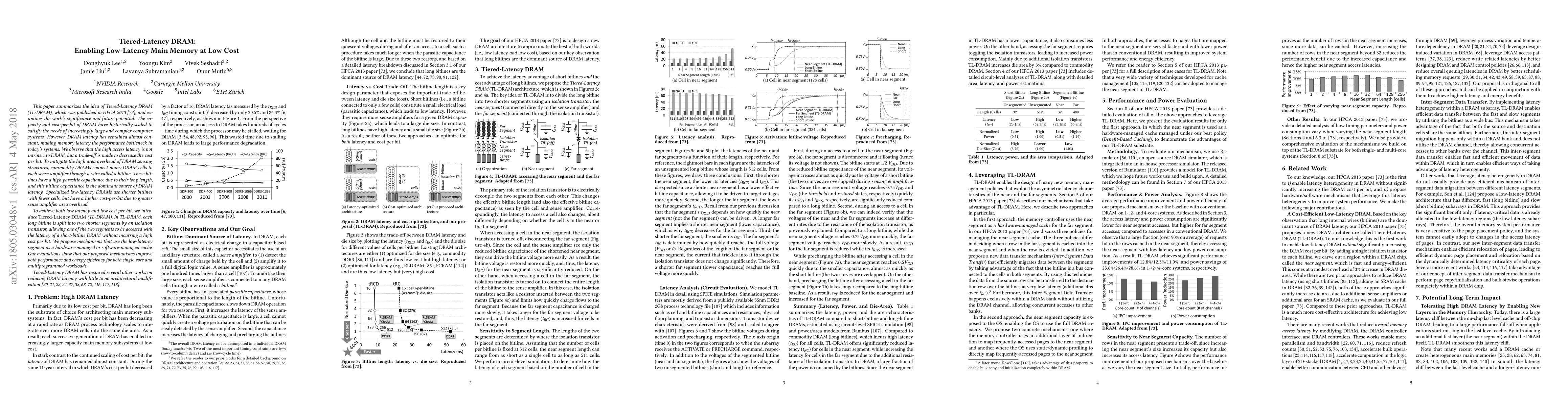 This research introduces Tiered-Latency DRAM (TL-DRAM), a cost-effective low-latency DRAM architecture that addresses the performance bottleneck caused by high DRAM latency without significantly increasing the cost per bit.