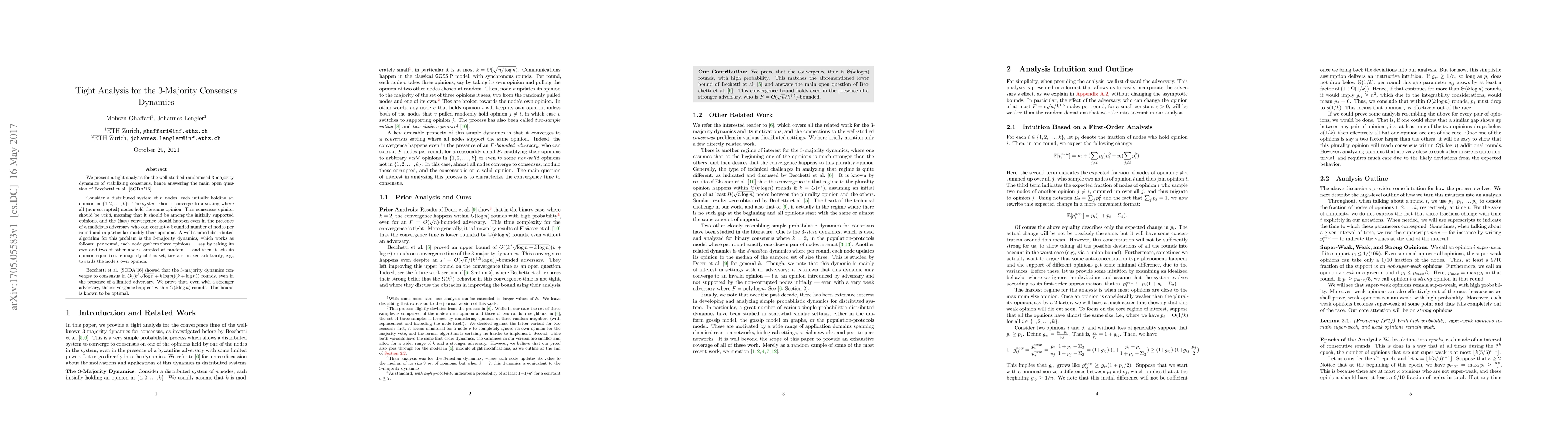 Researchers improved the 3-majority consensus dynamics algorithm to converge in O(k heta n) rounds with a stronger adversary, answering an open question from 2016.