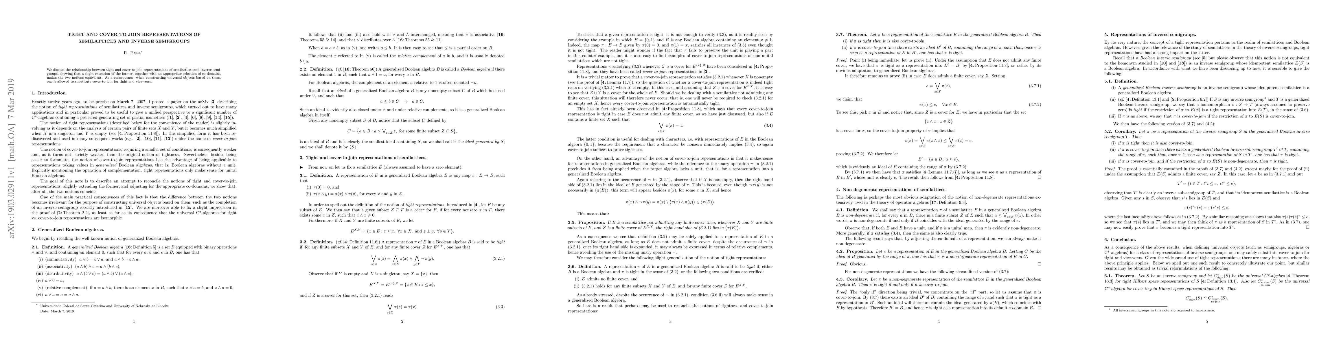 We discuss the relationship between tight and cover-to-join representations of semilattices and inverse semigroups, showing that a slight extension of the former, together with an appropriate selection of co-domains, makes the two notions equivalent. As a consequence, when constructing universal objects based on them, one is allowed to substitute cover-to-join for tight and vice-versa.