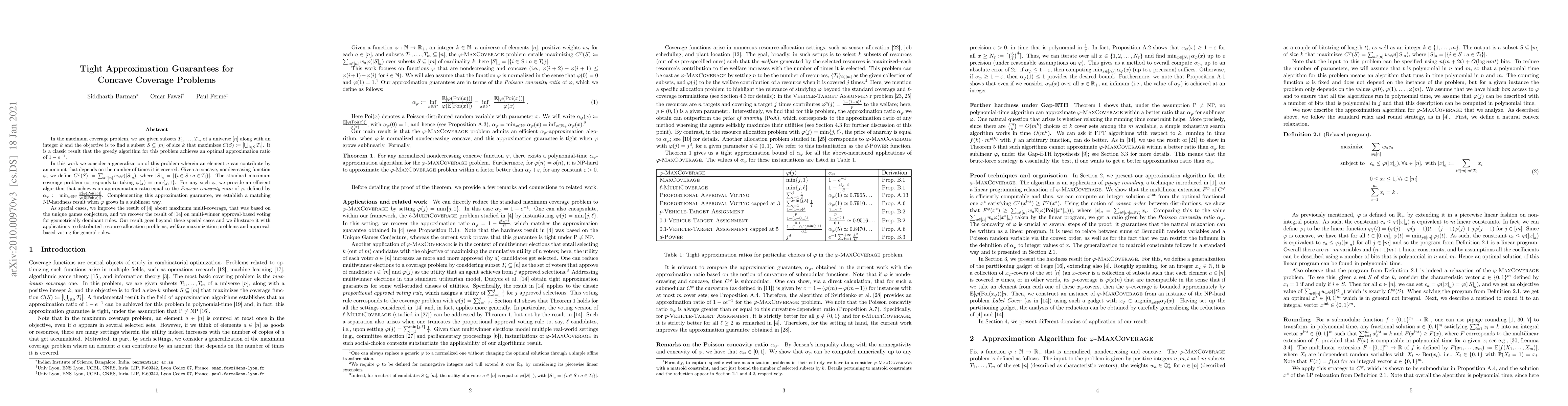 This paper presents an efficient algorithm for a generalized maximum coverage problem where coverage contributions depend on a concave, nondecreasing function. The algorithm achieves an approximation ratio tied to the Poisson concavity ratio of the function, and the authors prove NP-hardness for sublinear growth functions.