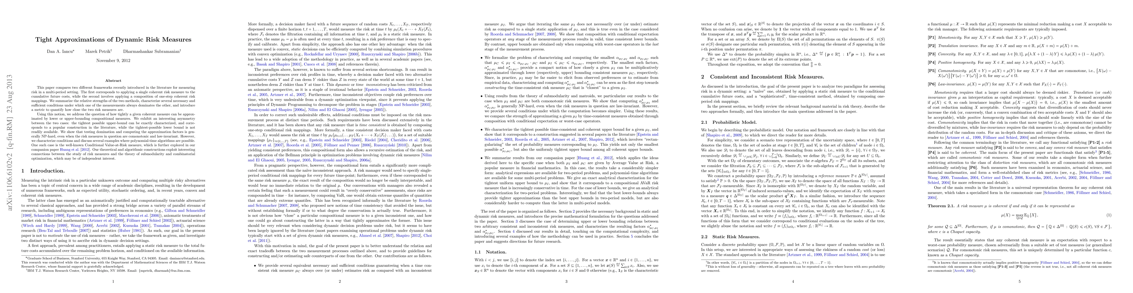 This paper compares two different frameworks recently introduced in the literature for measuring risk in a multi-period setting. The first corresponds to applying a single coherent risk measure to the cumulative future costs, while the second involves applying a composition of one-step coherent risk mappings. We summarize the relative strengths of the two methods, characterize several necessary and sufficient conditions under which one of the measurements always dominates the other, and introduce a metric to quantify how close the two risk measures are. Using this notion, we address the question of how tightly a given coherent measure can be approximated by lower or upper-bounding compositional measures. We exhibit an interesting asymmetry between the two cases: the tightest possible upper-bound can be exactly characterized, and corresponds to a popular construction in the literature, while the tightest-possible lower bound is not readily available. We show that testing domination and computing the approximation factors is generally NP-hard, even when the risk measures in question are comonotonic and law-invariant. However, we characterize conditions and discuss several examples where polynomial-time algorithms are possible. One such case is the well-known Conditional Value-at-Risk measure, which is further explored in our companion paper [Huang, Iancu, Petrik and Subramanian, "Static and Dynamic Conditional Value at Risk" (2012)]. Our theoretical and algorithmic constructions exploit interesting connections between the study of risk measures and the theory of submodularity and combinatorial optimization, which may be of independent interest.