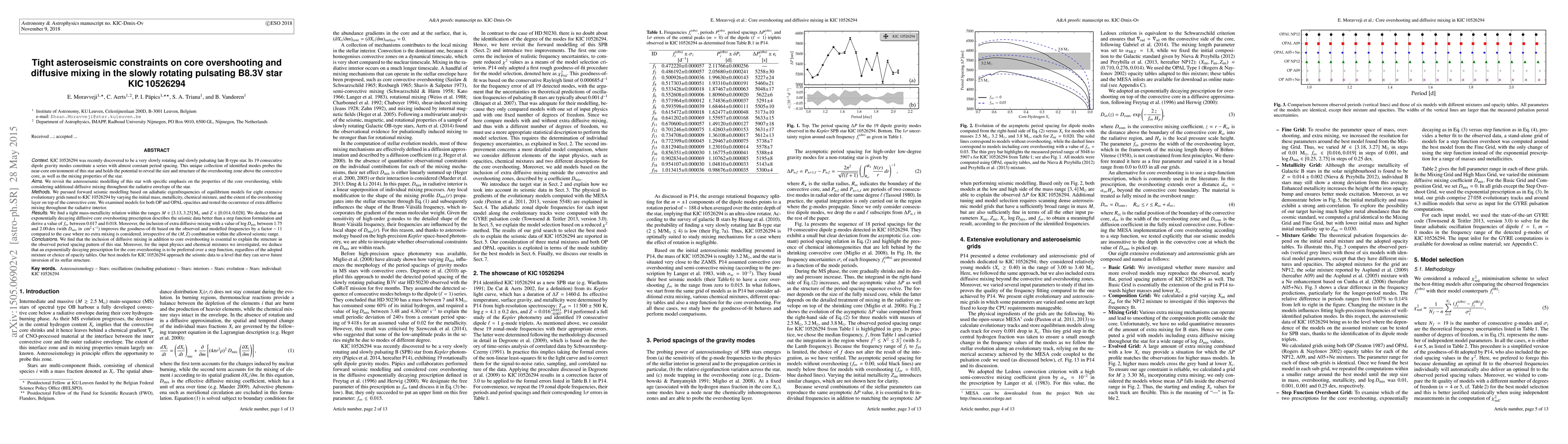This paper investigates the core overshooting and diffusive mixing in the slowly rotating B-type star KIC 10526294 using asteroseismic data. The study finds that an exponentially decaying diffusive core overshooting model, along with extra diffusive mixing, provides a better fit for the observed frequencies than step function formulations, suggesting a value of $f_{ov}$ between 0.017 and 0.018 and $\log D_{\rm mix}$ between 1.75 and 2.00 dex.