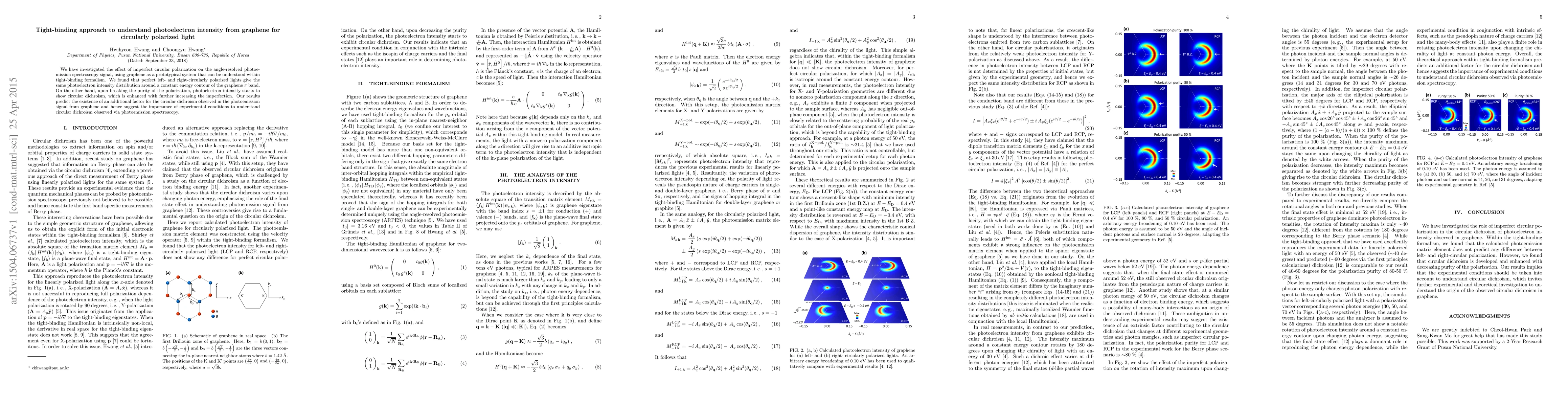 This study uses a tight-binding approach to analyze the photoelectron intensity from graphene under circularly polarized light, revealing that imperfect polarization introduces circular dichroism in the photoemission signal, suggesting the need to consider experimental conditions for accurate photoemission spectroscopy interpretations.