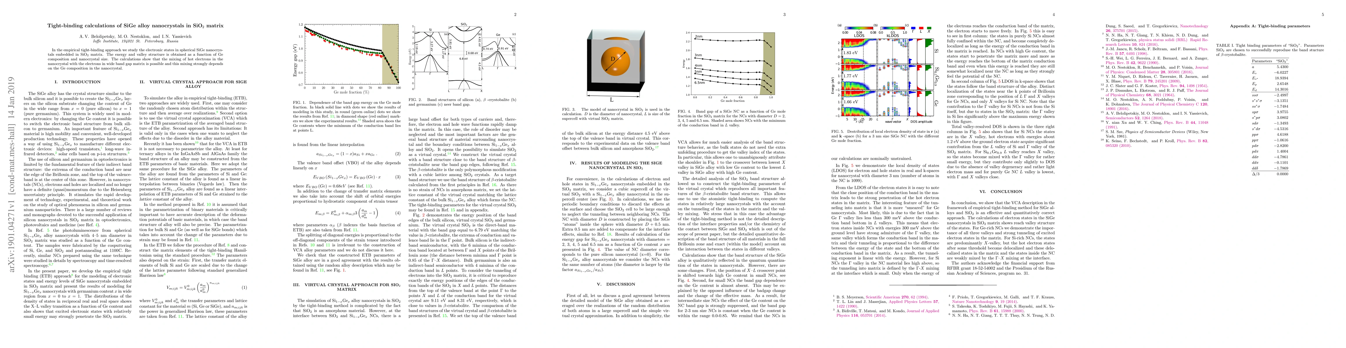 This paper uses the empirical tight-binding method to investigate the electronic states in SiGe alloy nanocrystals within a SiO2 matrix, revealing that the interaction between hot electrons in the nanocrystal and the matrix depends significantly on the Ge composition and nanocrystal size.
