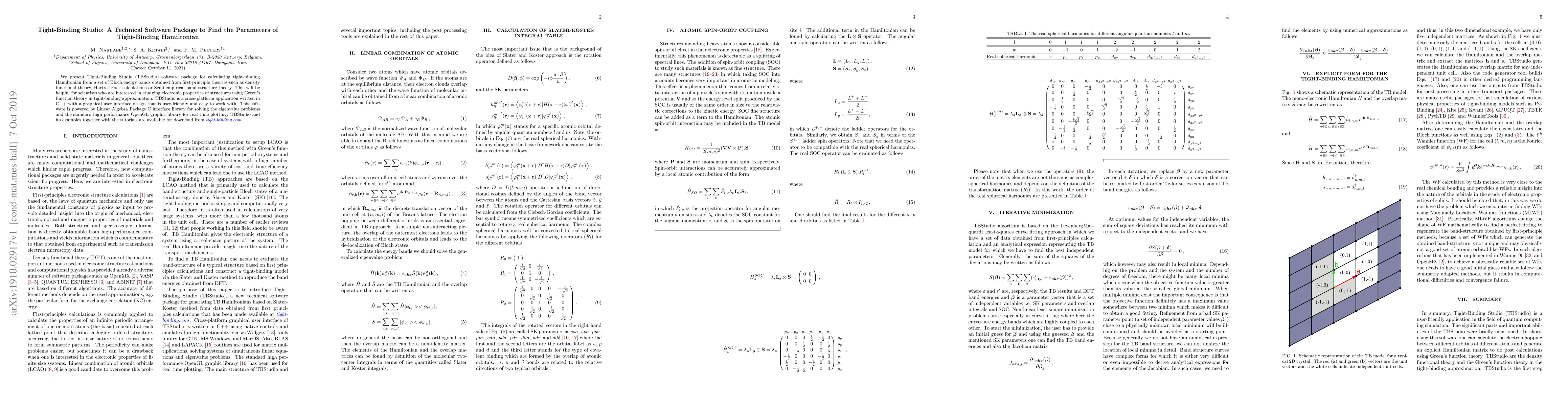 Tight-Binding Studio (TBStudio) is a C++ software package for deriving tight-binding Hamiltonians from first-principles calculations. It features a user-friendly GUI and supports real-time plotting, aiding researchers in studying electronic properties using tight-binding approximation.