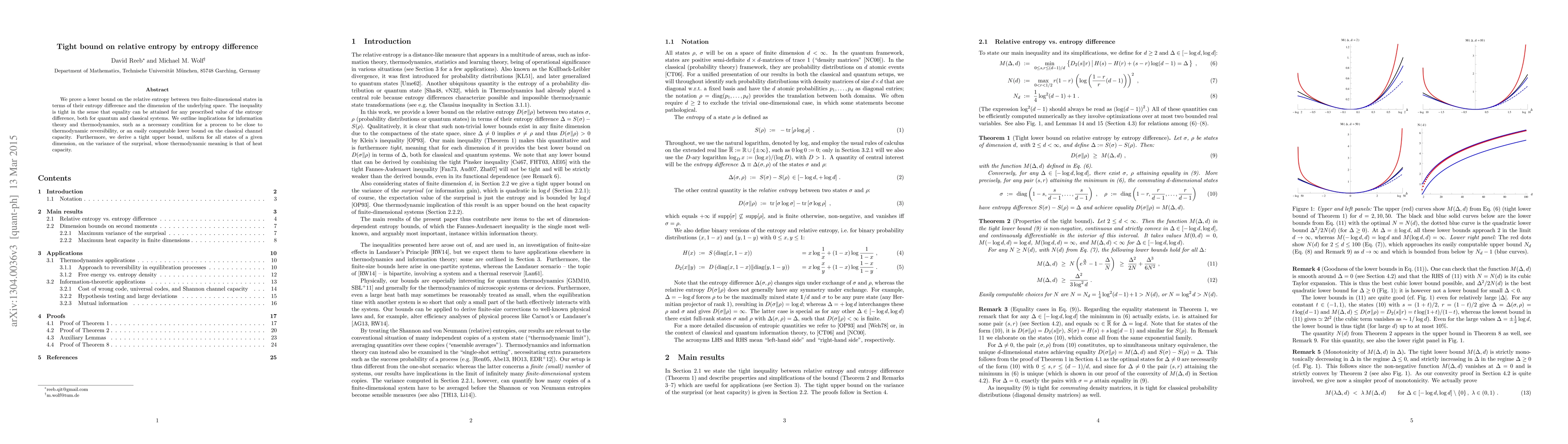 This research paper proves a tight lower bound on relative entropy between two states in terms of their entropy difference and system dimension, with implications for information theory and thermodynamics.