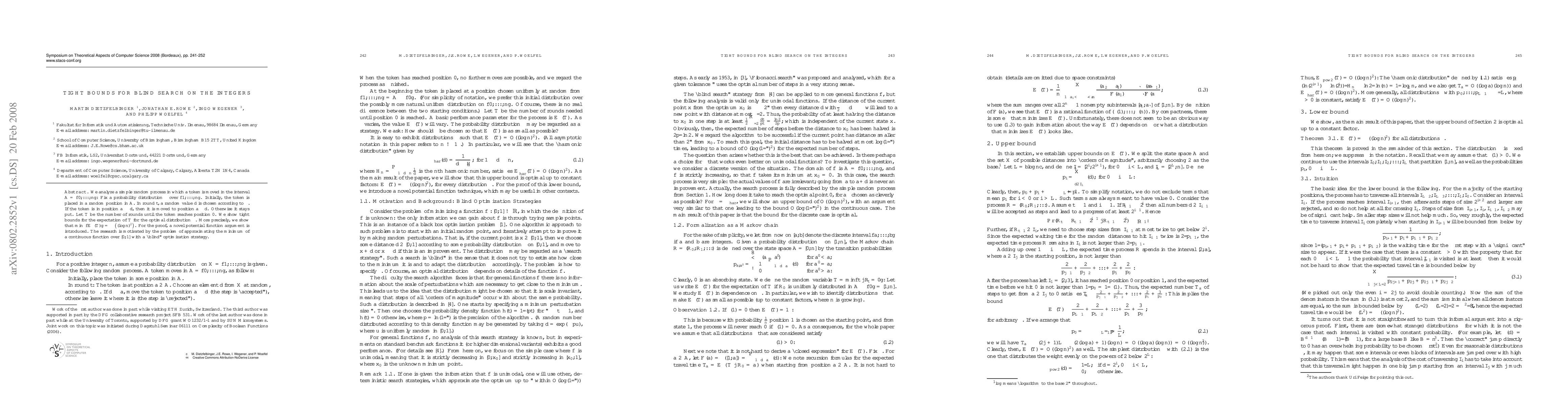 Researchers analyze a random process to find tight bounds for blind search on integers, showing that the optimal strategy has an expected time complexity of θ((πn)^2).