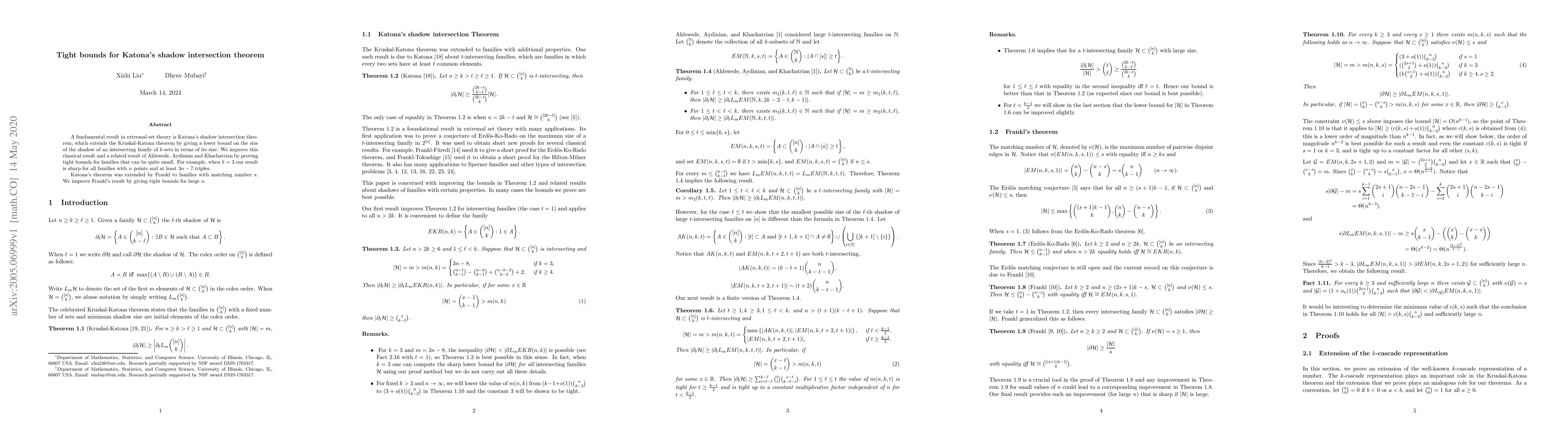 A fundamental result in extremal set theory is Katona's shadow intersection theorem, which extends the Kruskal-Katona theorem by giving a lower bound on the size of the shadow of an intersecting family of $k$-sets in terms of its size. We improve this classical result and a related result of Ahlswede, Aydinian, and Khachatrian by proving tight bounds for families that can be quite small. For example, when $k=3$ our result is sharp for all families with $n$ points and at least $3n-7$ triples. Katona's theorem was extended by Frankl to families with matching number $s$. We improve Frankl's result by giving tight bounds for large $n$.