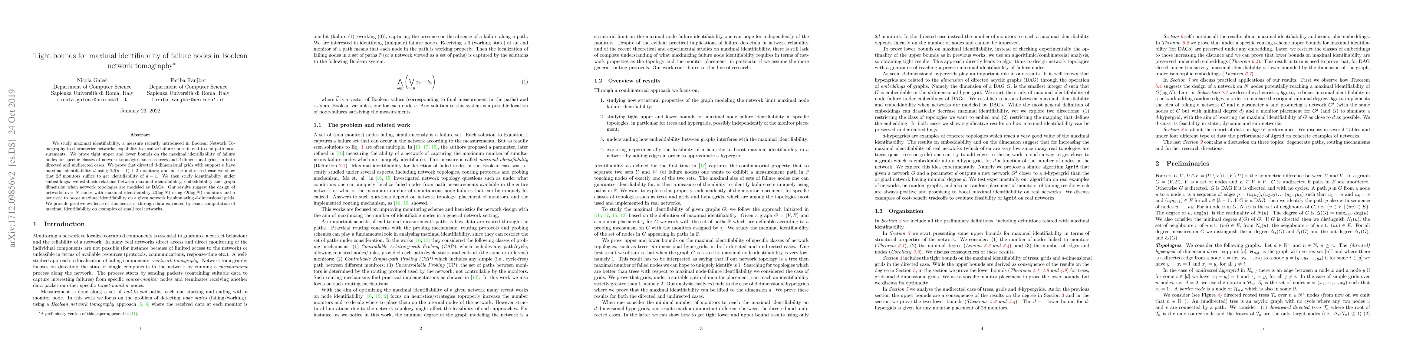 We study maximal identifiability, a measure recently introduced in Boolean Network Tomography to characterize networks' capability to localize failure nodes in end-to-end path measurements. We prove tight upper and lower bounds on the maximal identifiability of failure nodes for specific classes of network topologies, such as trees and $d$-dimensional grids, in both directed and undirected cases. We prove that directed $d$-dimensional grids with support $n$ have maximal identifiability $d$ using $2d(n-1)+2$ monitors; and in the undirected case we show that $2d$ monitors suffice to get identifiability of $d-1$. We then study identifiability under embeddings: we establish relations between maximal identifiability, embeddability and graph dimension when network topologies are model as DAGs. Our results suggest the design of networks over $N$ nodes with maximal identifiability $\Omega(\log N)$ using $O(\log N)$ monitors and a heuristic to boost maximal identifiability on a given network by simulating $d$-dimensional grids. We provide positive evidence of this heuristic through data extracted by exact computation of maximal identifiability on examples of small real networks.