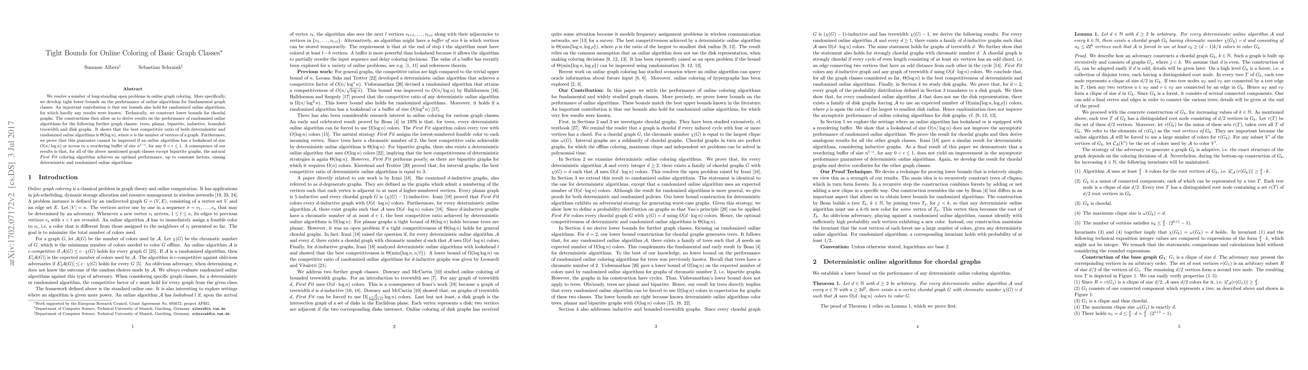 We resolve a number of long-standing open problems in online graph coloring. More specifically, we develop tight lower bounds on the performance of online algorithms for fundamental graph classes. An important contribution is that our bounds also hold for randomized online algorithms, for which hardly any results were known. Technically, we construct lower bounds for chordal graphs. The constructions then allow us to derive results on the performance of randomized online algorithms for the following further graph classes: trees, planar, bipartite, inductive, bounded-treewidth and disk graphs. It shows that the best competitive ratio of both deterministic and randomized online algorithms is $\Theta(\log n)$, where $n$ is the number of vertices of a graph. Furthermore, we prove that this guarantee cannot be improved if an online algorithm has a lookahead of size $O(n/\log n)$ or access to a reordering buffer of size $n^{1-\epsilon}$, for any $0<\epsilon\leq 1$. A consequence of our results is that, for all of the above mentioned graph classes except bipartite graphs, the natural $\textit{First Fit}$ coloring algorithm achieves an optimal performance, up to constant factors, among deterministic and randomized online algorithms.