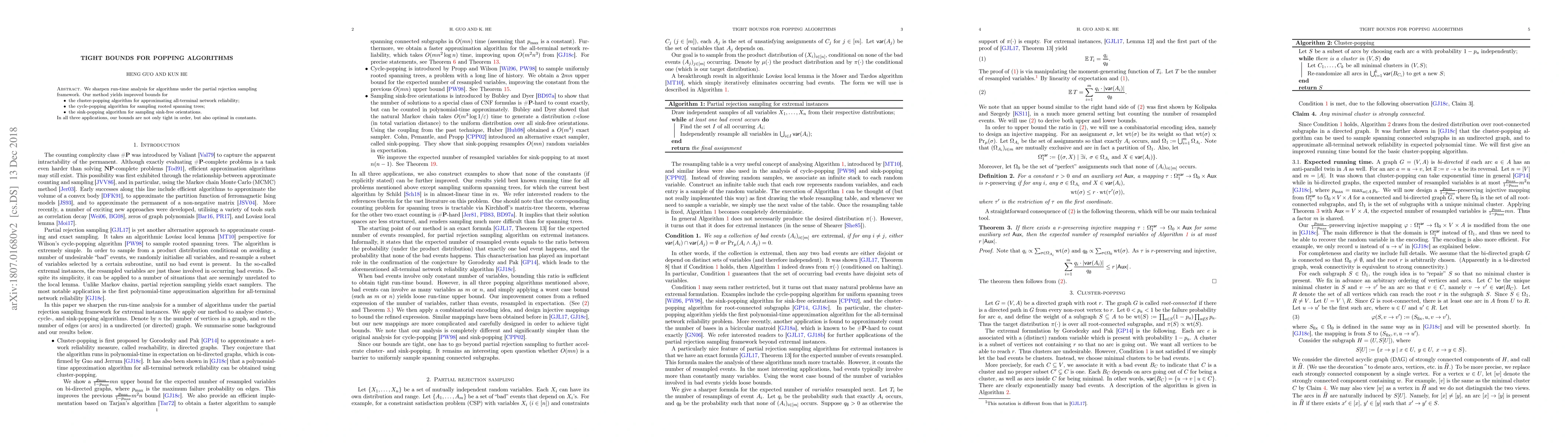 This research paper enhances the analysis of algorithms' runtime under partial rejection sampling, providing tighter bounds for three key algorithms: cluster-popping for network reliability, cycle-popping for spanning trees, and sink-popping for sink-free orientations. These improvements are optimal in both order and constants.