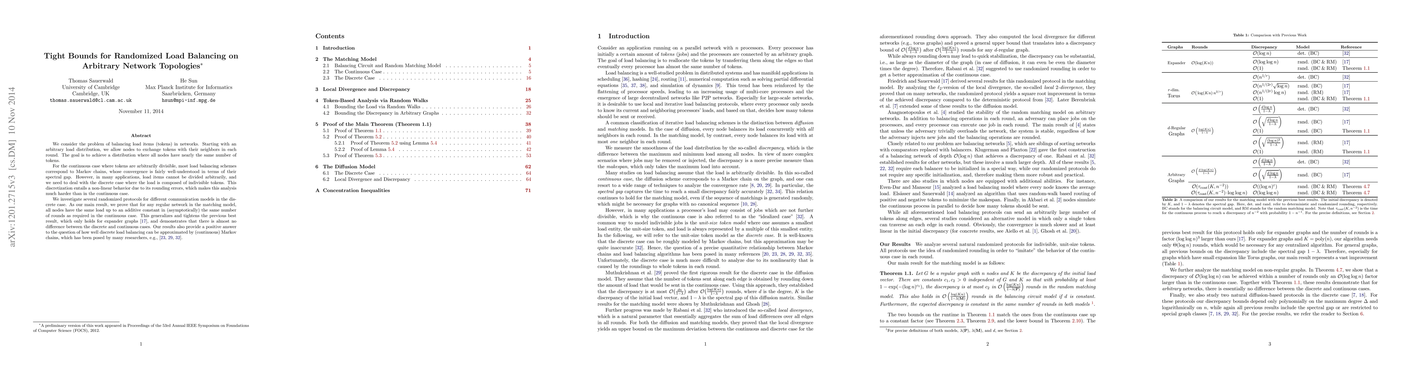 This paper establishes tight bounds for randomized load balancing on arbitrary network topologies, showing that discrete load balancing schemes can achieve nearly equal distribution in a similar number of rounds as continuous cases.