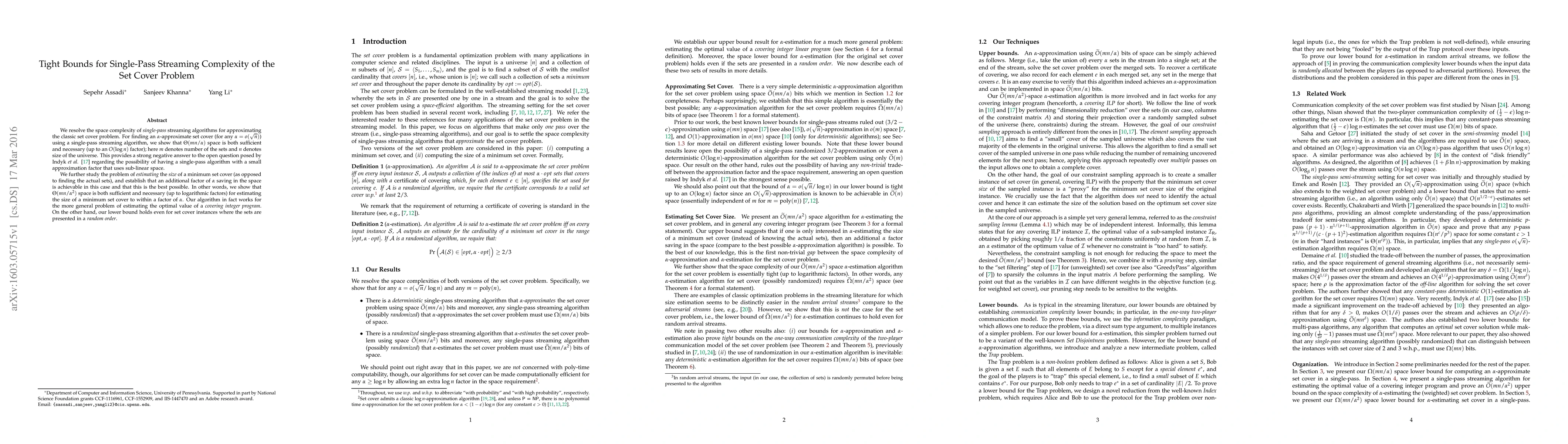 The paper presents a detailed analysis leading to tight bounds for the space complexity of single-pass streaming algorithms for set cover approximation and estimation, challenging previous assumptions about the trade-off between approximation factor and space usage.