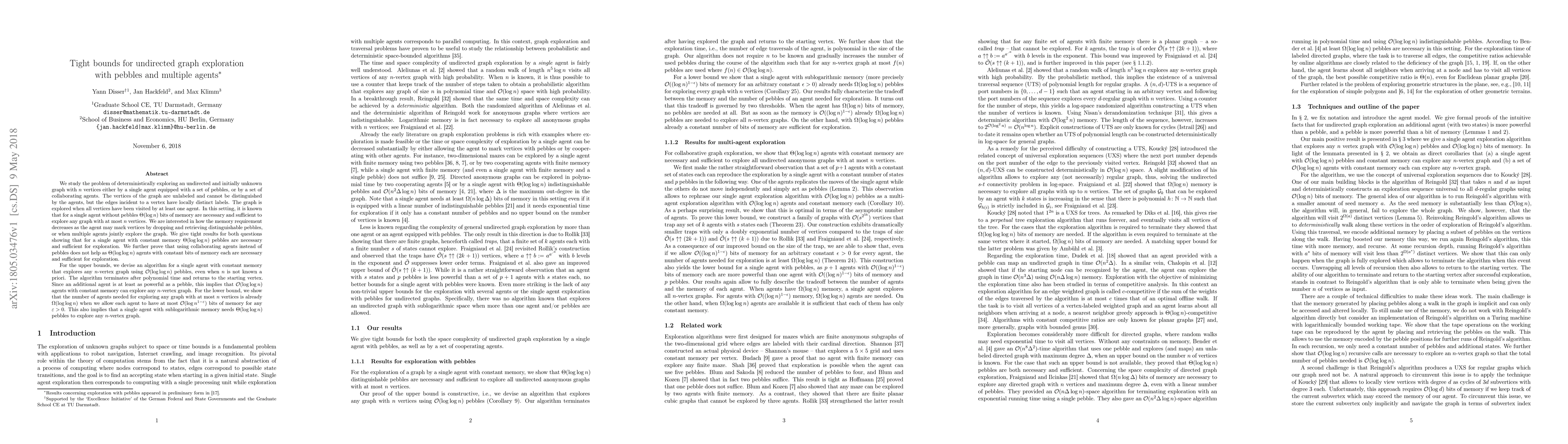 This paper explores the memory and pebble requirements for deterministically exploring an undirected graph with either a single agent or multiple collaborating agents. It establishes that $\Theta(\log \log n)$ pebbles are necessary and sufficient for a single agent with constant memory, and the same bound applies to the number of agents required for exploration.