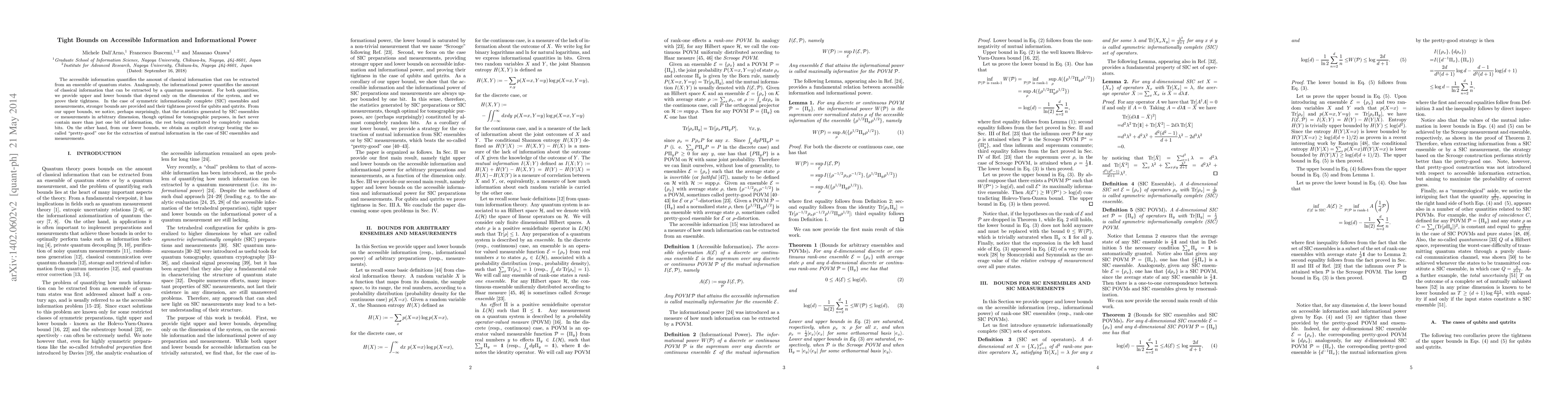This paper establishes tight bounds on accessible information and informational power in quantum systems, showing that optimal SIC ensembles and measurements yield only one bit of useful information, with the rest being random. It also provides an improved strategy for mutual information extraction using SIC ensembles.