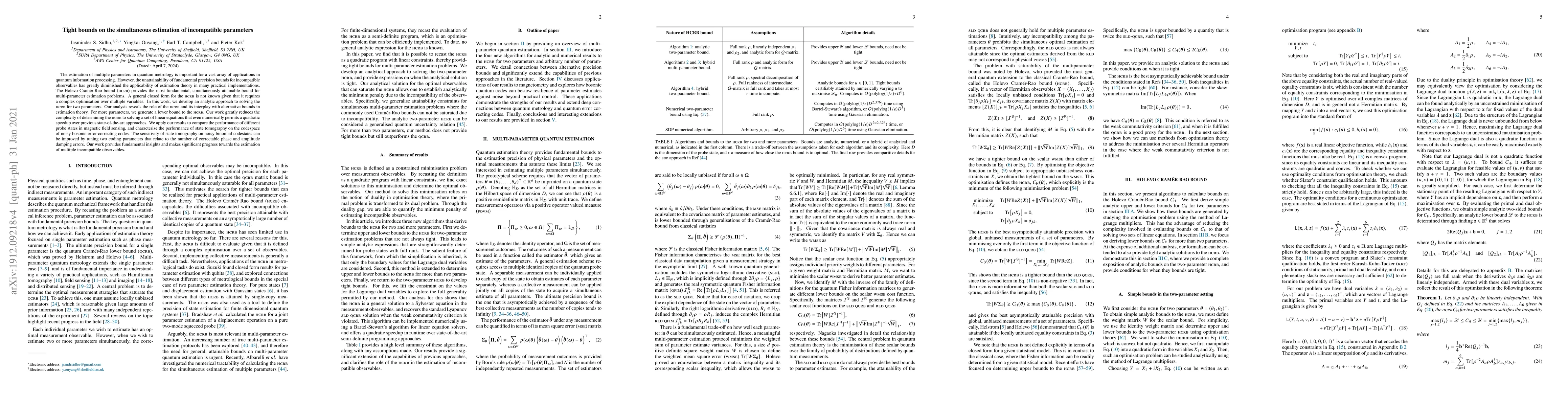 The estimation of multiple parameters in quantum metrology is important for a vast array of applications in quantum information processing. However, the unattainability of fundamental precision bounds for incompatible observables has greatly diminished the applicability of estimation theory in many practical implementations. The Holevo Cramer-Rao bound (HCRB) provides the most fundamental, simultaneously attainable bound for multi-parameter estimation problems. A general closed form for the HCRB is not known given that it requires a complex optimisation over multiple variables. In this work, we develop an analytic approach to solving the HCRB for two parameters. Our analysis reveals the role of the HCRB and its interplay with alternative bounds in estimation theory. For more parameters, we generate a lower bound to the HCRB. Our work greatly reduces the complexity of determining the HCRB to solving a set of linear equations that even numerically permits a quadratic speedup over previous state-of-the-art approaches. We apply our results to compare the performance of different probe states in magnetic field sensing, and characterise the performance of state tomography on the codespace of noisy bosonic error-correcting codes. The sensitivity of state tomography on noisy binomial codestates can be improved by tuning two coding parameters that relate to the number of correctable phase and amplitude damping errors. Our work provides fundamental insights and makes significant progress towards the estimation of multiple incompatible observables.