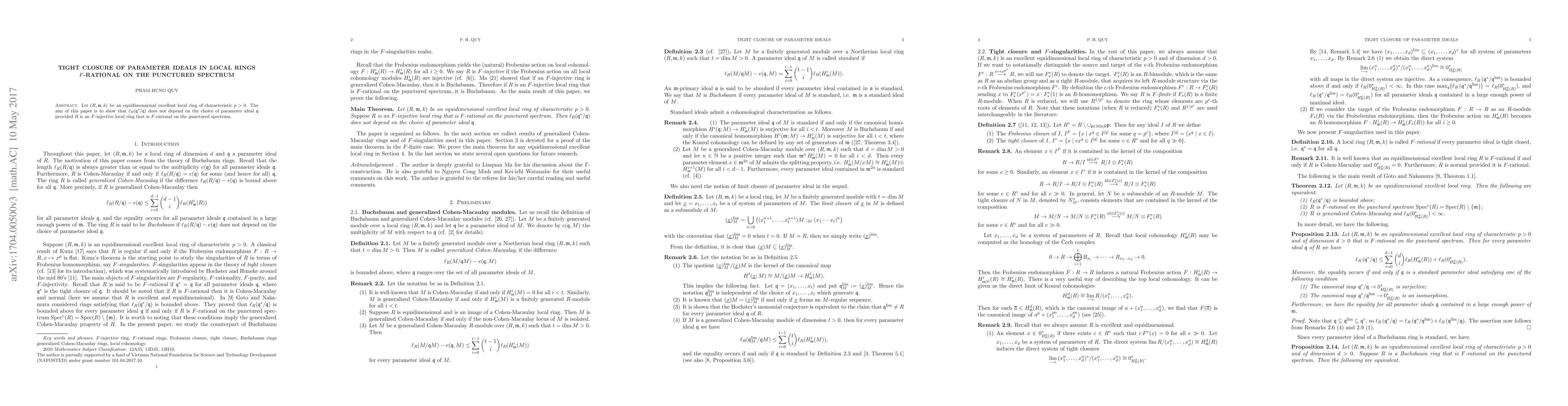 Let $(R, \mathfrak{m}, k)$ be an excellent equidimensional local ring of characteristic $p>0$. The aim of this paper is to show that $\ell_R(\mathfrak{q}^*/\mathfrak{q})$ does not depend on the choice of parameter ideal $\mathfrak{q}$ provided $R$ is an $F$-injective local ring that is $F$-rational on the punctured spectrum.