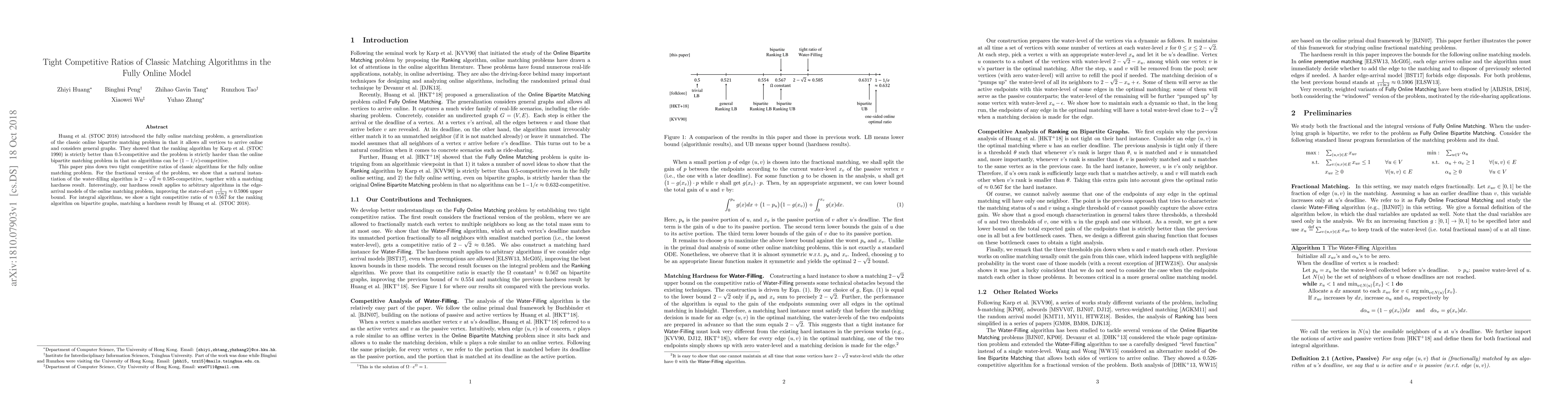 This paper establishes tight competitive ratios for classic algorithms in the fully online matching problem, showing that a water-filling algorithm is $2-\sqrt{2}$-competitive for the fractional version and a ranking algorithm achieves a competitive ratio of $\approx 0.567$ for bipartite graphs, with matching hardness results.