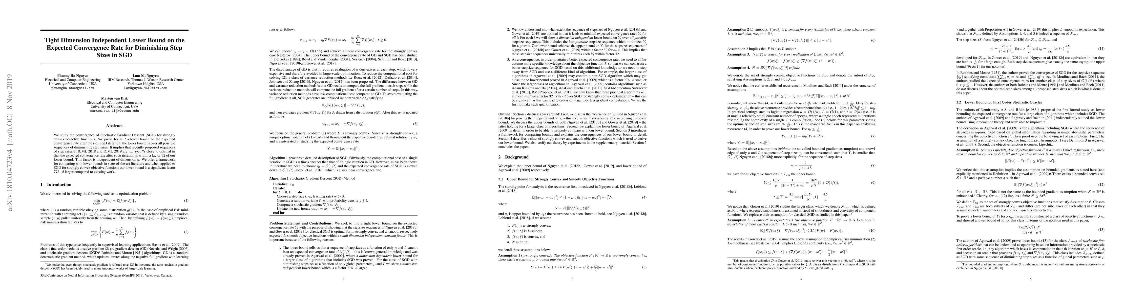 This paper provides a tight dimension-independent lower bound on the expected convergence rate for Stochastic Gradient Descent (SGD) with diminishing step sizes. It shows that recent step size sequences are nearly optimal, differing by a constant factor of 32 from the lower bound, which remains dimension-independent.