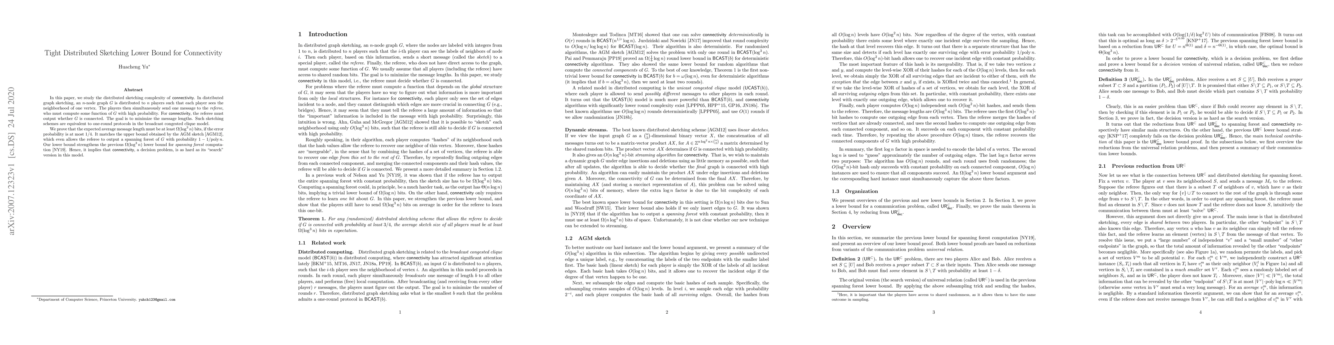 This paper establishes a lower bound of $\Omega(\log^3 n)$ bits for the expected average message length in distributed sketching for connectivity, matching the upper bound of the AGM sketch. It strengthens previous results for spanning forest computation, indicating that connectivity is as challenging as its search version in distributed graph sketching.