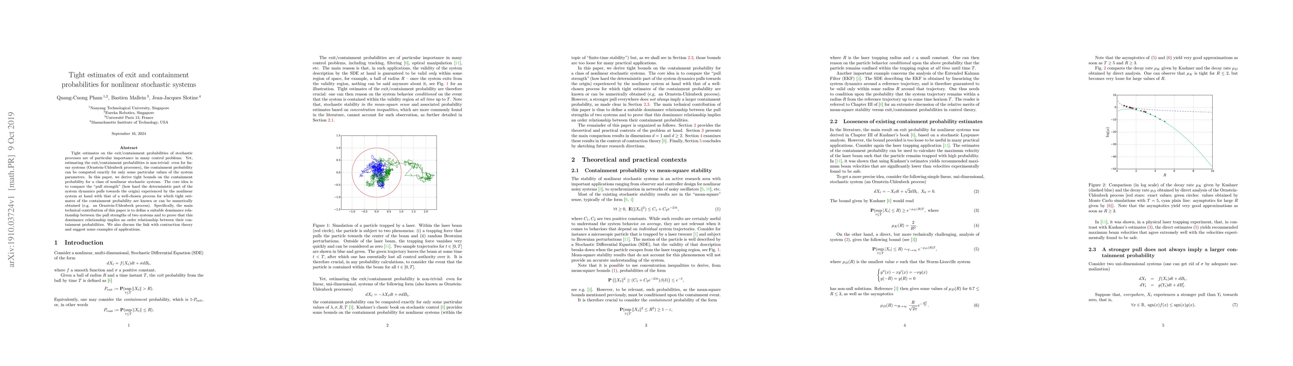 This paper derives tight bounds on containment probabilities for nonlinear stochastic systems by comparing their "pull strength" to that of linear systems like Ornstein-Uhlenbeck processes, establishing a dominance relationship that translates to containment probability order. It also connects these findings to contraction theory and provides examples of applications.