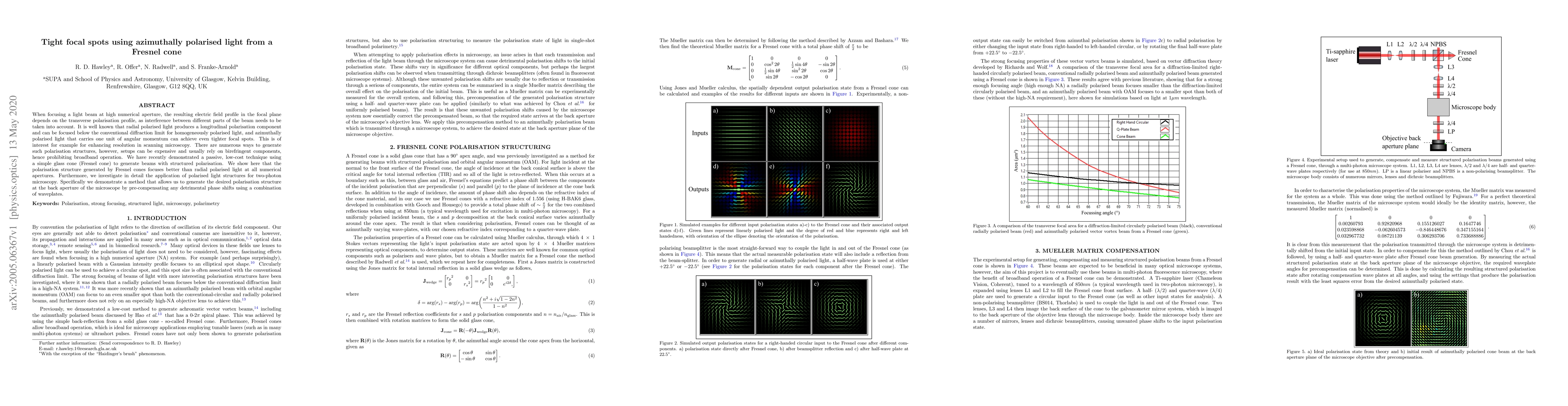 This paper explores the generation of azimuthally polarised light using a Fresnel cone to produce tightly focused spots, surpassing the resolution limits of conventional light microscopy. The method enables enhanced resolution in scanning microscopy and offers a cost-effective alternative to traditional birefringent techniques, with potential applications in two-photon microscopy.