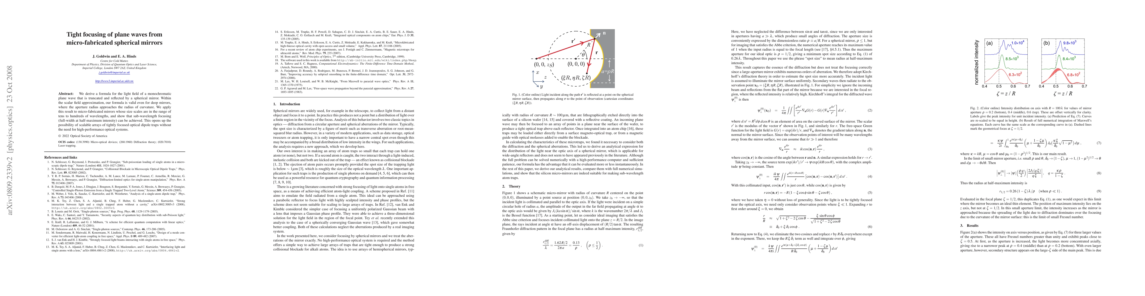 This paper derives a formula for the light field of truncated plane waves reflected by spherical mirrors, demonstrating sub-wavelength spot sizes achievable with micro-fabricated mirrors. This innovation enables scalable arrays of tightly focused optical dipole traps without requiring high-performance optical systems.
