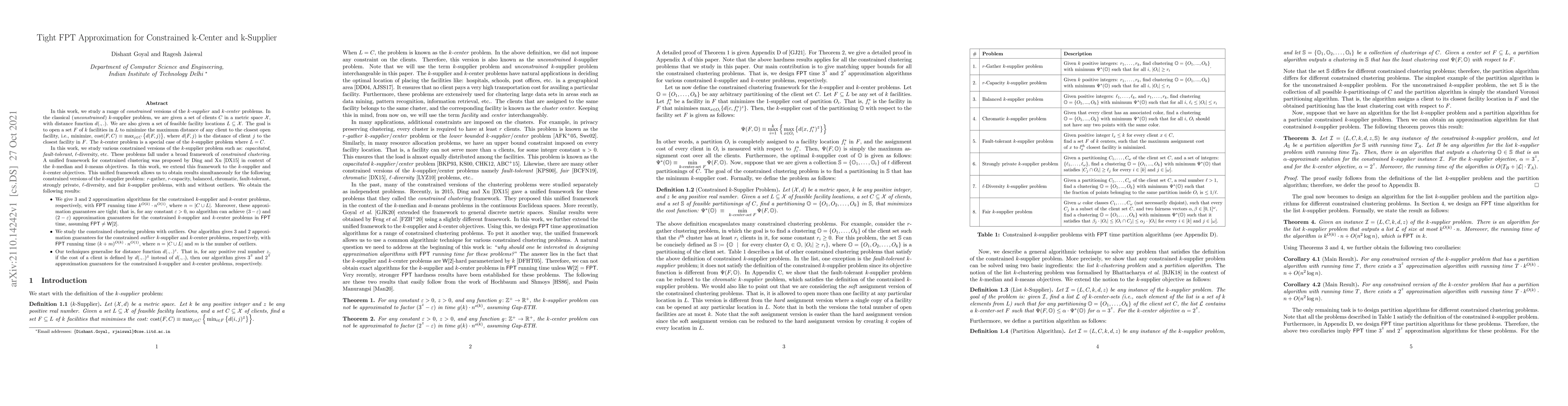 This paper extends a unified framework for constrained clustering to the $k$-supplier and $k$-center problems, achieving $3$ and $2$ approximation algorithms respectively within FPT time. The results demonstrate tight approximation guarantees and apply to various constrained versions, including outlier settings.