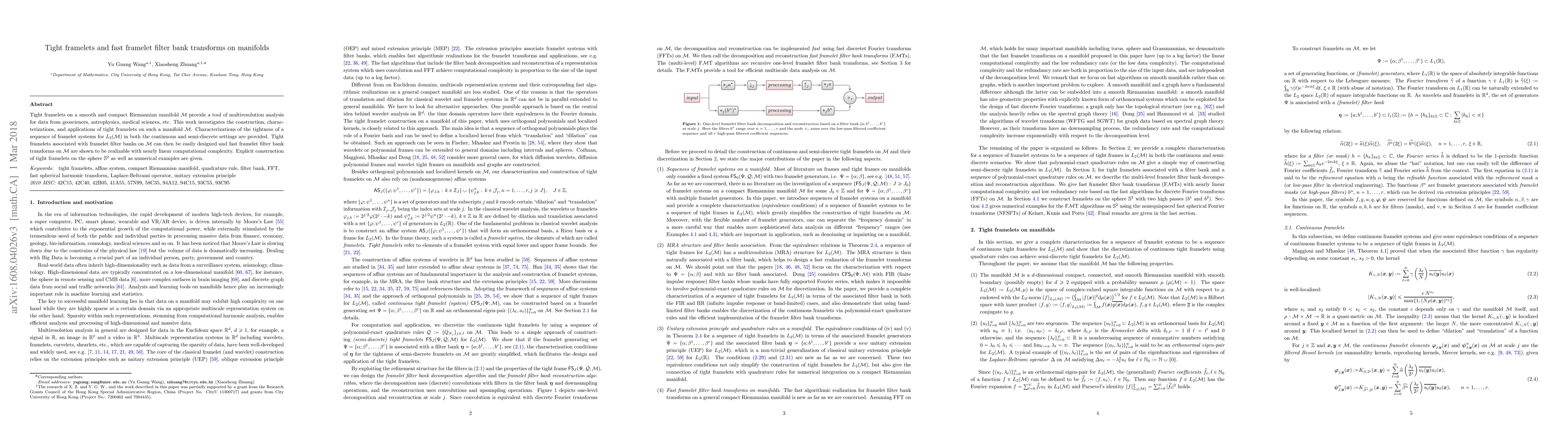 Researchers developed a new mathematical tool called tight framelets to analyze data from various fields like geosciences and medicine. These framelets can provide multiresolution analysis on complex data structures, such as manifolds.