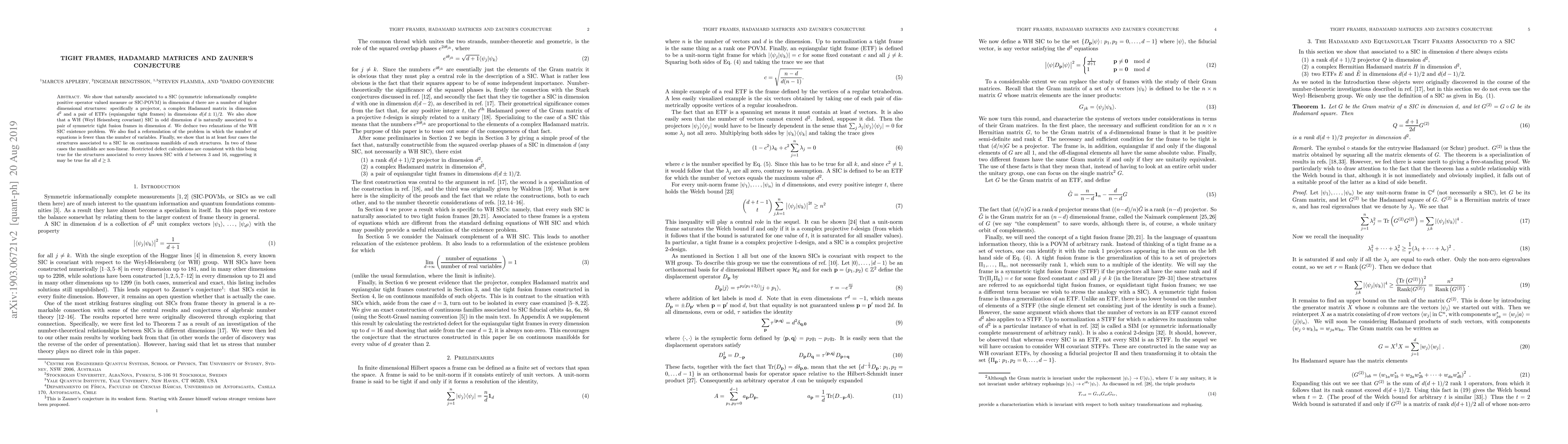 We show that naturally associated to a SIC (symmetric informationally complete positive operator valued measure or SIC-POVM) in dimension d there are a number of higher dimensional structures: specifically a projector and a complex Hadamard matrix in dimension d squared and a pair of ETFs (equiangular tight frames) in dimensions d(d-1)/2, d(d+1)/2. We also show that a WH (Weyl Heisenberg covariant) SIC in odd dimension d is naturally associated to a pair of symmetric tight fusion frames in dimension d. We deduce two relaxations of the WH SIC existence problem. We also find a reformulation of the problem in which the number of equations is fewer than the number of variables. Finally, we show that in at least four cases the structures associated to a SIC lie on continuous manifolds of such structures. In two of these cases the manifolds are non-linear. Restricted defect calculations are consistent with this being true for the structures associated to every known SIC with d between 3 and 16, suggesting it may be true for all d greater than 2.