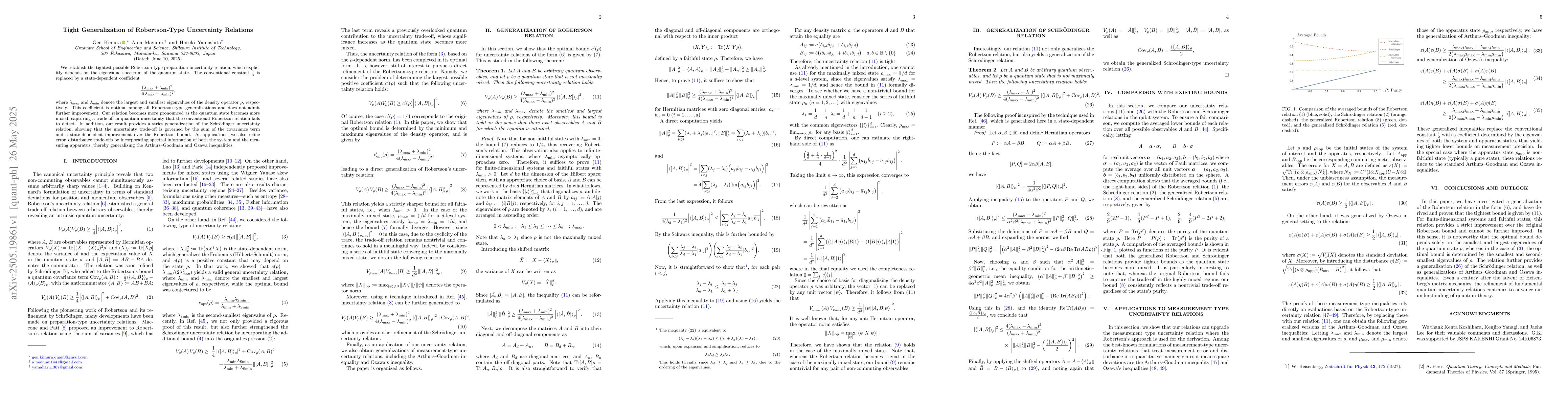 The paper establishes a tightest possible Robertson-type preparation uncertainty relation by replacing the conventional constant 1/4 with a state-dependent coefficient based on the eigenvalue spectrum of the quantum state.