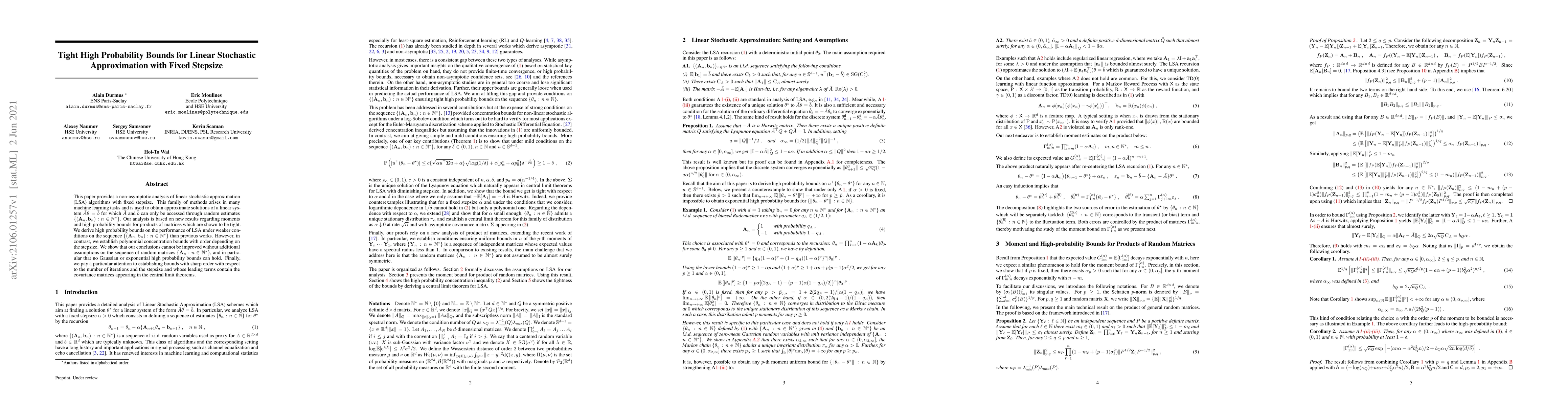 The paper introduces new results on moments and high probability bounds for products of matrices, which are shown to be tight, and applies these to derive performance bounds for LSA algorithms with fixed stepsize.
