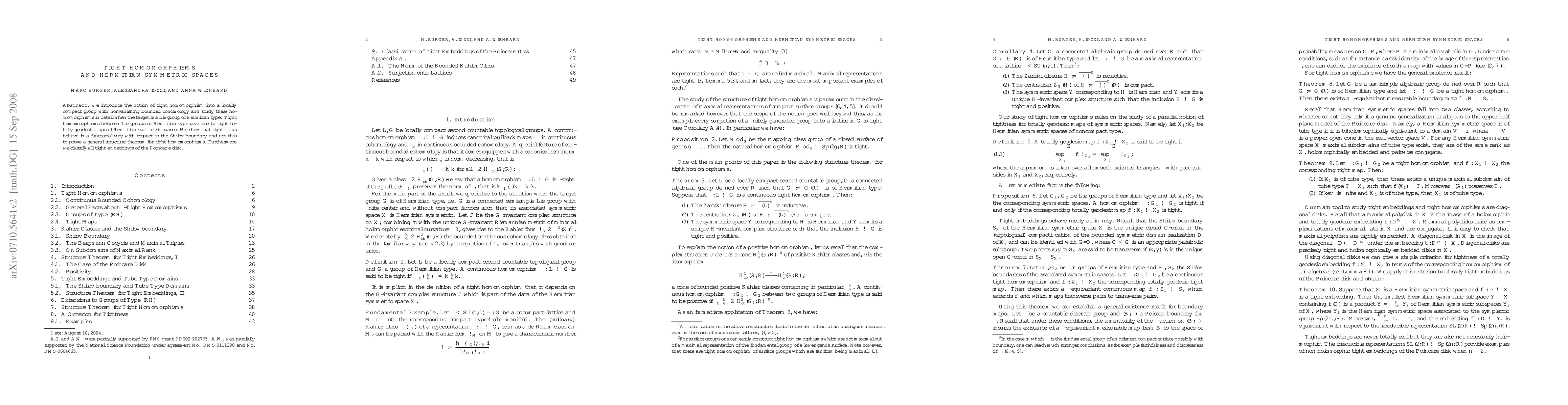 This paper introduces the concept of tight homomorphisms in locally compact groups and examines their behavior when mapping to Lie groups of Hermitian type, revealing their role in Hermitian symmetric spaces. It establishes a structure theorem for these homomorphisms and classifies tight embeddings of the Poincaré disk.