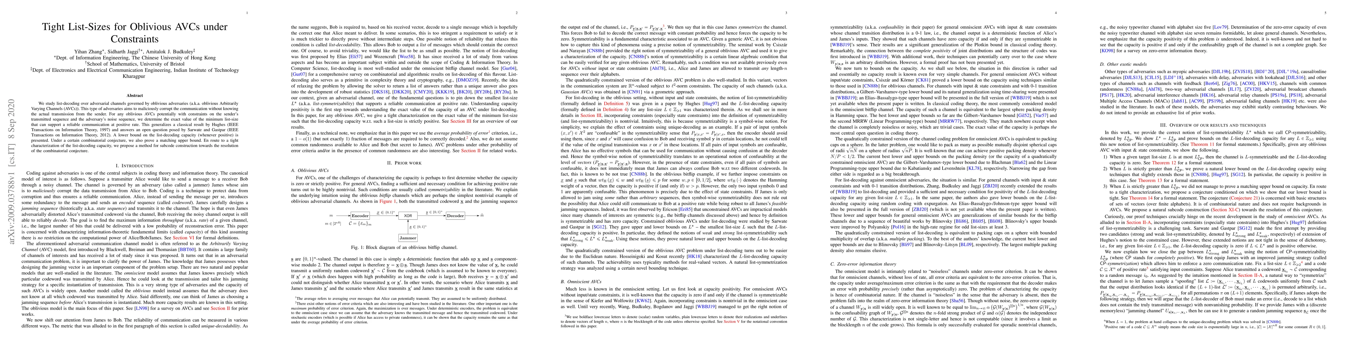 We study list-decoding over adversarial channels governed by oblivious adversaries (a.k.a. oblivious Arbitrarily Varying Channels (AVCs)). This type of adversaries aims to maliciously corrupt the communication without knowing the actual transmission from the sender. For any oblivious AVCs potentially with constraints on the sender's transmitted sequence and the adversary's noise sequence, we determine the exact value of the minimum list-size that can support a reliable communication at positive rate. This generalizes a classical result by Hughes (IEEE Transactions on Information Theory, 1997) and answers an open question posed by Sarwate and Gastpar (IEEE Transactions on Information Theory, 2012). A lower bound on the list-decoding capacity (whenever positive) is presented. Under a certain combinatorial conjecture, we also prove a matching upper bound. En route to a tight characterization of the list-decoding capacity, we propose a method for subcode construction towards the resolution of the combinatorial conjecture.