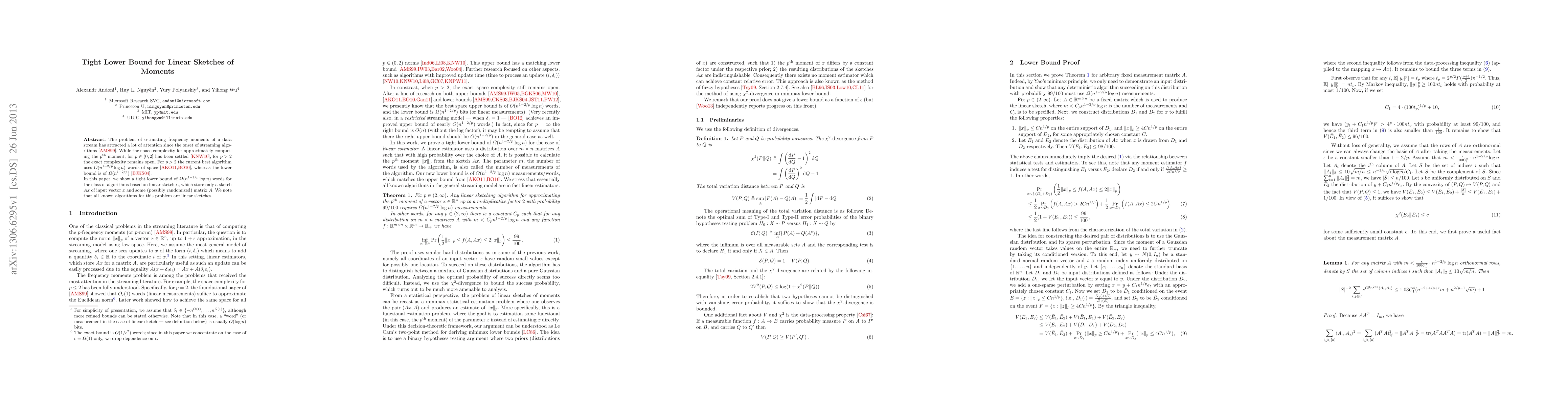 This paper establishes a tight lower bound of $\Omega(n^{1-2/p}\log n)$ words for linear sketch algorithms estimating frequency moments of data streams for $p>2$, demonstrating that all known algorithms for this problem fall within this complexity.