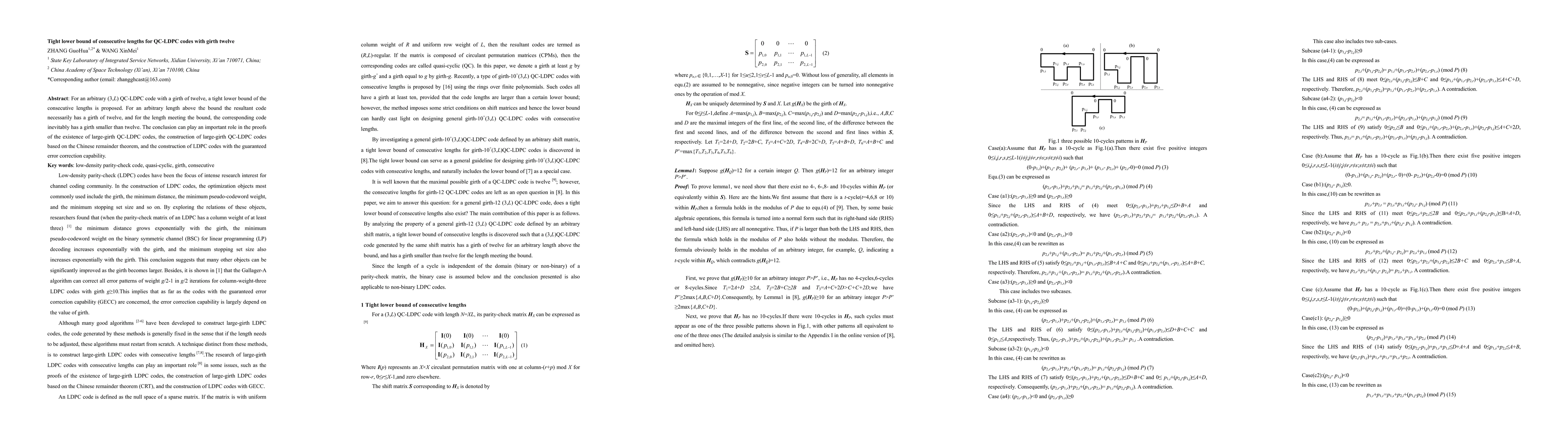 This paper proposes a tight lower bound for the consecutive lengths of (3,L) QC-LDPC codes with a girth of twelve. It establishes that above this bound, the code must have a girth of twelve, while at the bound, the code will have a girth less than twelve.