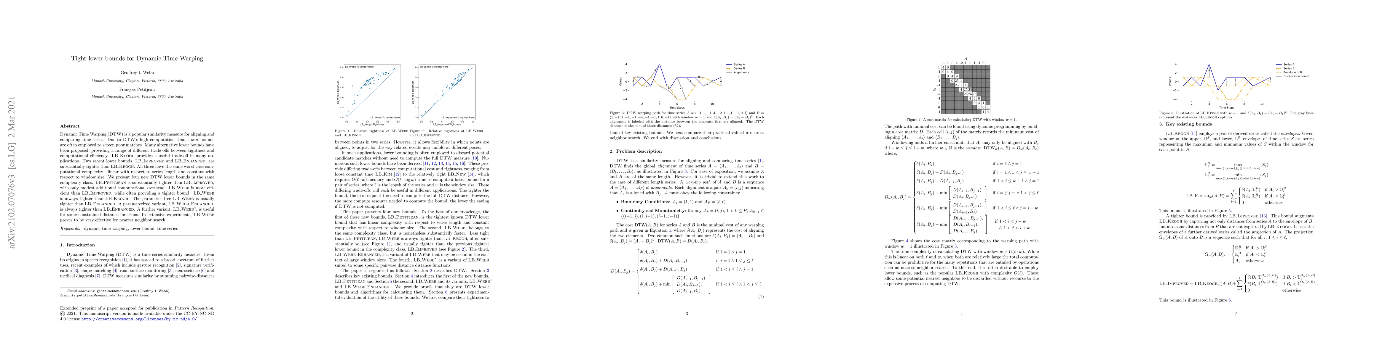 This paper introduces four new lower bounds for Dynamic Time Warping (DTW), including LB Petitjean, LB Webb, and their variants, which offer tighter bounds compared to existing methods like LB Improved and LB Enhanced, while maintaining linear computational complexity. LB Webb is particularly effective for nearest neighbor search.