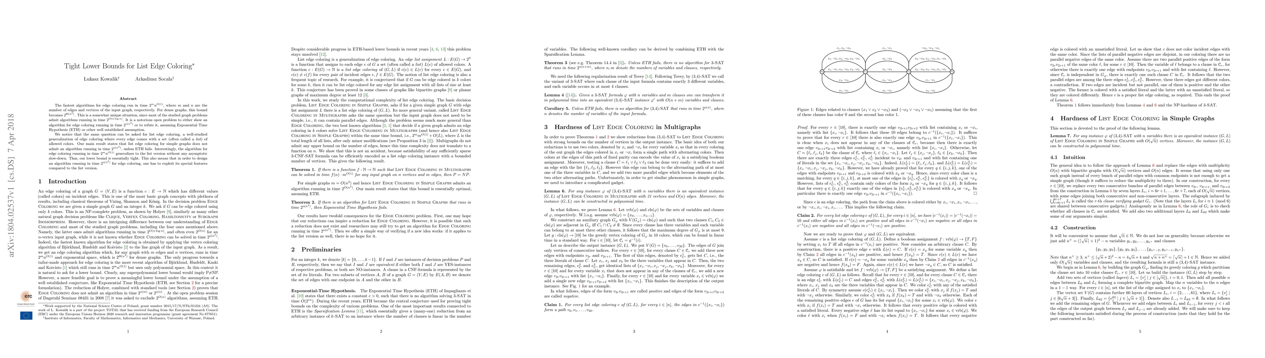 This paper establishes tight lower bounds for list edge coloring, demonstrating that no algorithm can achieve a runtime of $2^{o(n^2)}$ unless the Exponential Time Hypothesis (ETH) fails. It shows that the known algorithm for edge coloring, which runs in $2^m n^{O(1)}$ time, extends to list edge coloring without an asymptotic slowdown.