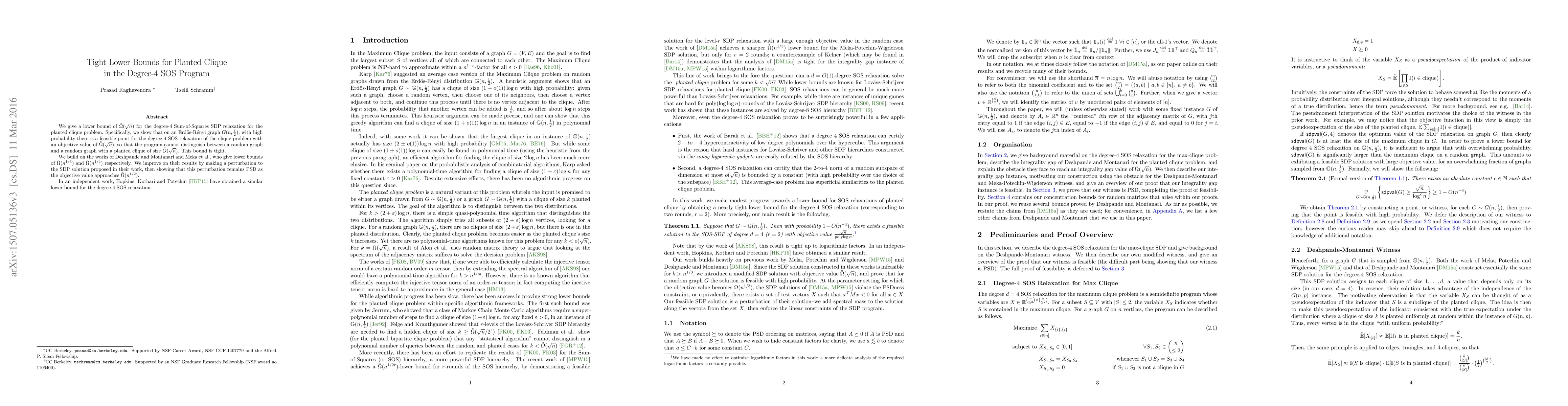 This paper establishes a $\tilde{\Omega}(\sqrt{n})$ lower bound for the degree-4 Sum-of-Squares SDP relaxation in the planted clique problem, showing it cannot distinguish random graphs from those with a planted clique of size $\tilde{O}(\sqrt{n})$. This improves upon previous bounds and is achieved by perturbing existing SDP solutions while maintaining positive semidefiniteness.
