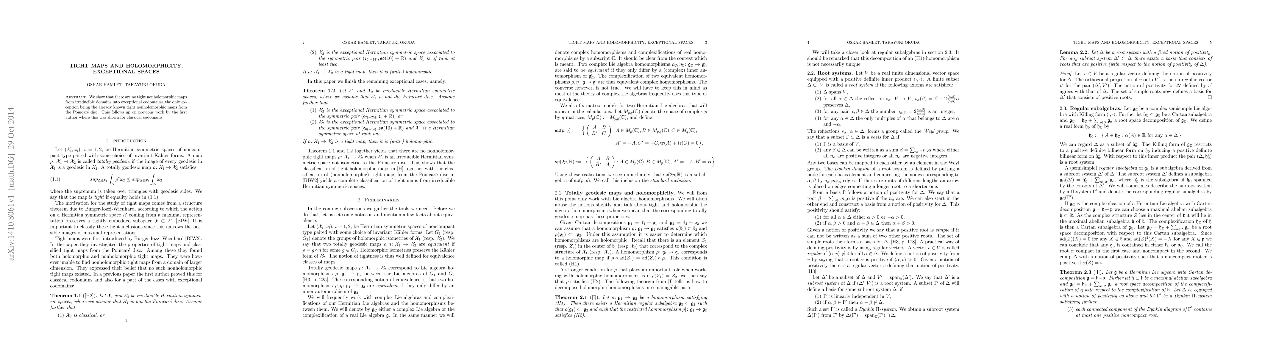 This research demonstrates the absence of tight nonholomorphic maps from irreducible domains to exceptional codomains, except for the previously identified cases involving the Poincaré disc. This extends earlier findings by the first author concerning classical codomains.