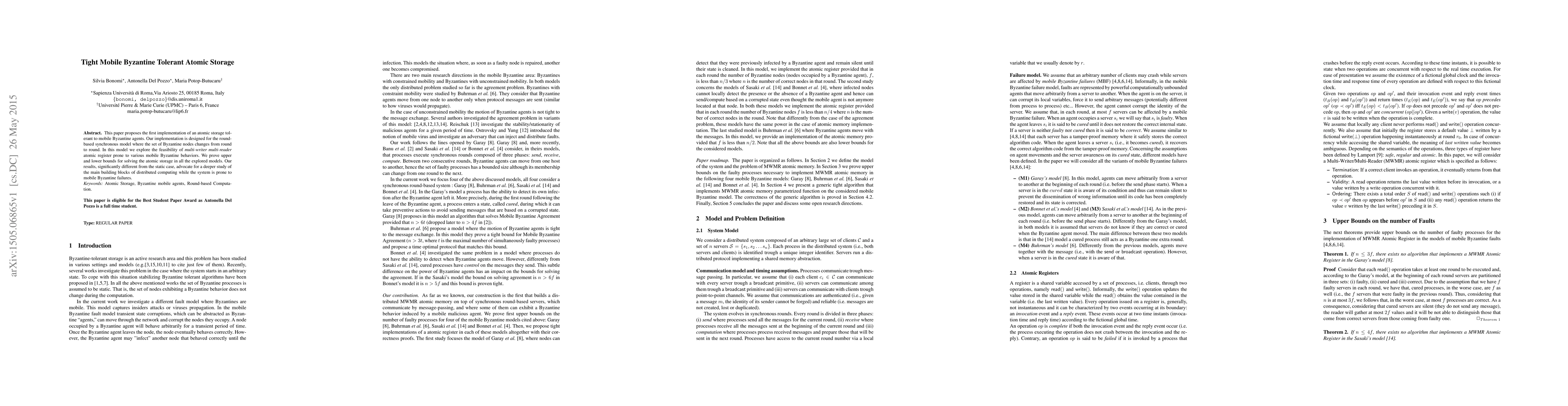 This paper introduces a novel implementation for atomic storage resilient to mobile Byzantine agents within a round-based synchronous model, demonstrating feasibility for multi-writer multi-reader registers under varying mobile Byzantine behaviors, and establishes upper and lower bounds for atomic storage solutions in these dynamic conditions.