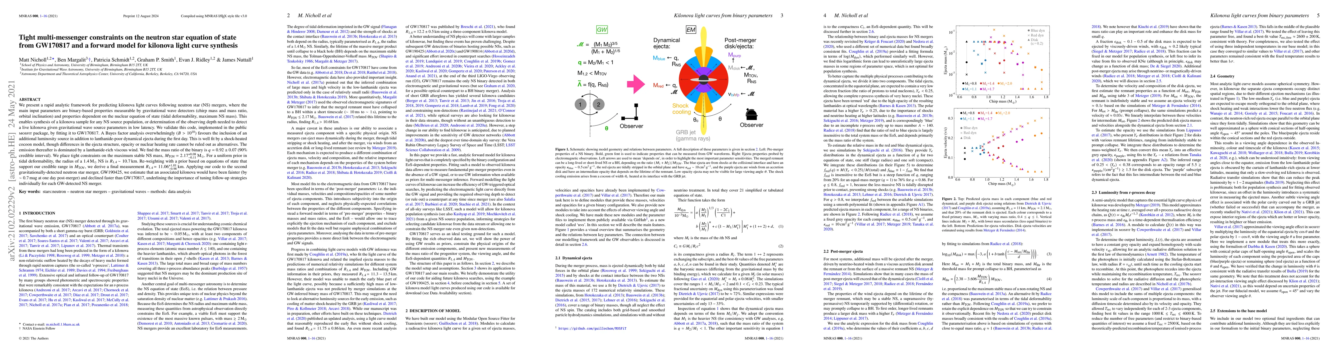 We present a rapid analytic framework for predicting kilonova light curves following neutron star (NS) mergers, where the main input parameters are binary-based properties measurable by gravitational wave detectors (chirp mass and mass ratio, orbital inclination) and properties dependent on the nuclear equation of state (tidal deformability, maximum NS mass). This enables synthesis of a kilonova sample for any NS source population, or determination of the observing depth needed to detect a live kilonova given gravitational wave source parameters in low latency. We validate this code, implemented in the public MOSFiT package, by fitting it to GW170817. A Bayes factor analysis overwhelmingly ($B>10^{10}$) favours the inclusion of an additional luminosity source in addition to lanthanide-poor dynamical ejecta during the first day. This is well fit by a shock-heated cocoon model, though differences in the ejecta structure, opacity or nuclear heating rate cannot be ruled out as alternatives. The emission thereafter is dominated by a lanthanide-rich viscous wind. We find the mass ratio of the binary is $q=0.92\pm0.07$ (90% credible interval). We place tight constraints on the maximum stable NS mass, $M_{\rm TOV}=2.17^{+0.08}_{-0.11}$ M$_\odot$. For a uniform prior in tidal deformability, the radius of a 1.4 M$_\odot$ NS is $R_{1.4}\sim 10.7$ km. Re-weighting with a prior based on equations of state that support our credible range in $M_{\rm TOV}$, we derive a final measurement $R_{1.4}=11.06^{+1.01}_{-0.98}$ km. Applying our code to the second gravitationally-detected neutron star merger, GW190425, we estimate that an associated kilonova would have been fainter (by $\sim0.7$ mag at one day post-merger) and declined faster than GW170817, underlining the importance of tuning follow-up strategies individually for each GW-detected NS merger.