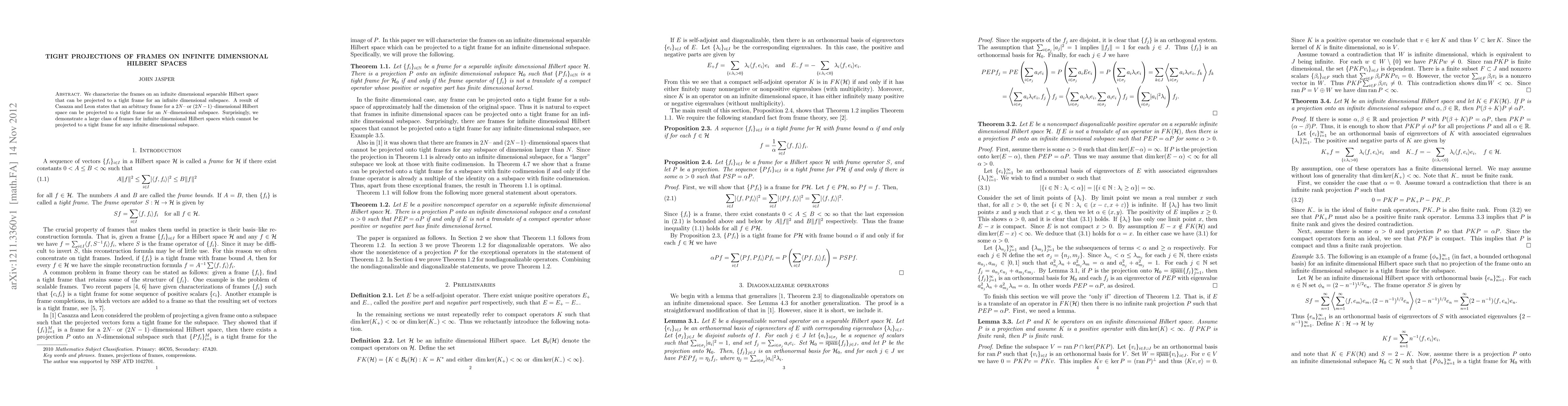 We characterize the frames on an infinite dimensional separable Hilbert space that can be projected to a tight frame for an infinite dimensional subspace. A result of Casazza and Leon states that an arbitrary frame for a 2N- or (2N-1)-dimensional Hilbert space can be projected to a tight frame for an N-dimensional subspace. Surprisingly, we demonstrate a large class of frames for infinite dimensional Hilbert spaces which cannot be projected to a tight frame for any infinite dimensional subspace.