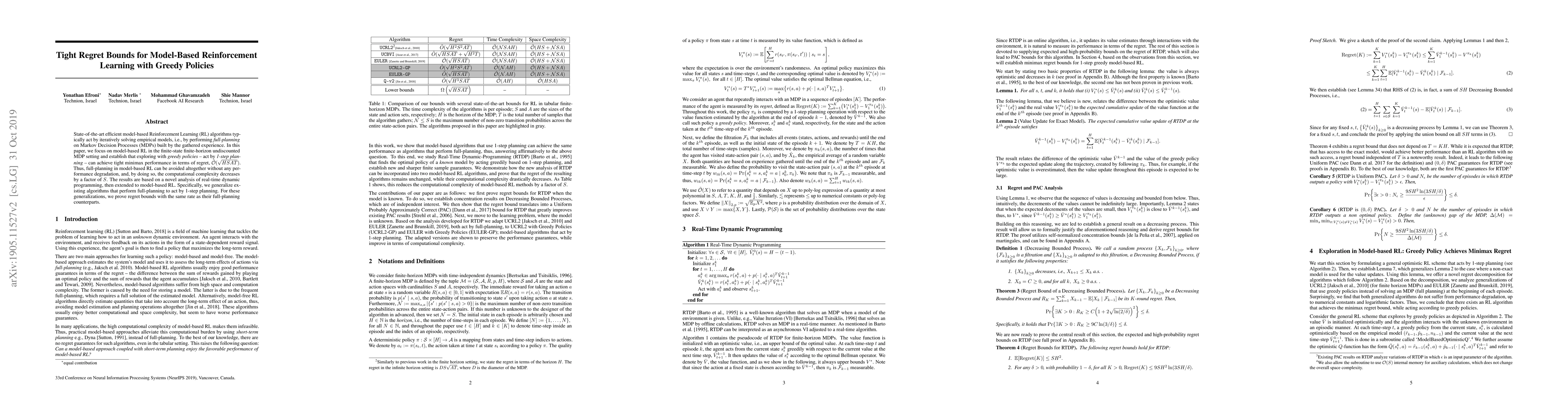 Researchers show that using greedy policies in model-based reinforcement learning can achieve tight regret bounds without full-planning, reducing computational complexity by a factor of S. This breakthrough enables efficient exploration with 1-step planning in finite-state finite-horizon MDPs.