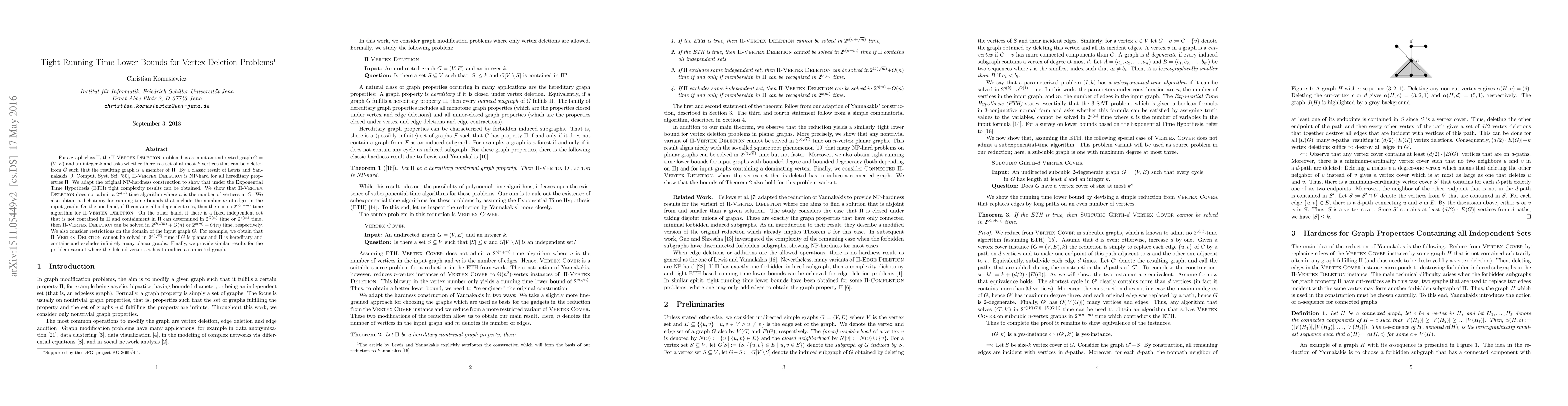 This paper establishes tight running time lower bounds for $\Pi$-Vertex Deletion problems under the Exponential Time Hypothesis, showing no $2^{o(n)}$ or $2^{o(n+m)}$-time algorithms exist for general cases. It also provides a dichotomy for running times based on the properties of $\Pi$ and the input graph's structure, including planar graphs.