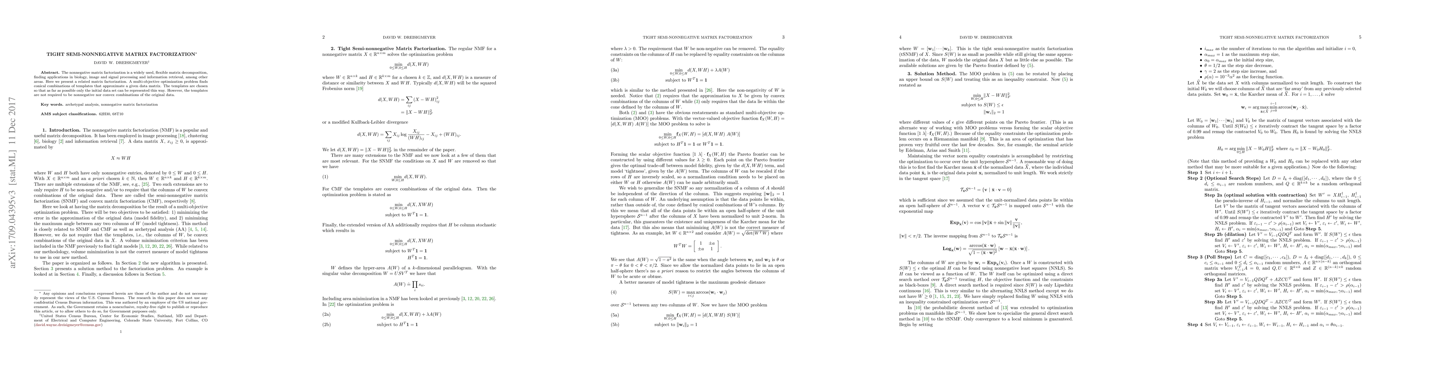 This paper introduces Tight Semi-Nonnegative Matrix Factorization, a novel matrix decomposition technique that seeks to approximate a data matrix using conical combinations of templates, with a focus on ensuring minimal representation of other datasets while relaxing the nonnegativity constraint on the templates. This method aims to extend the flexibility and applicability of traditional nonnegative matrix factorization.