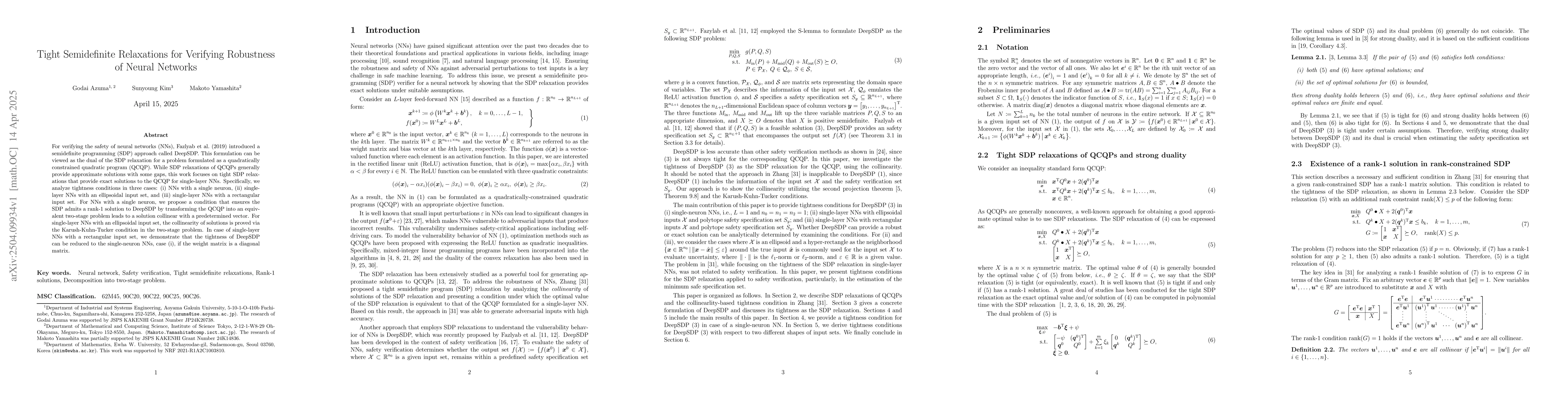 The paper presents conditions for exact SDP relaxations in specific cases of single-layer neural networks, providing a more reliable approach to robustness verification.