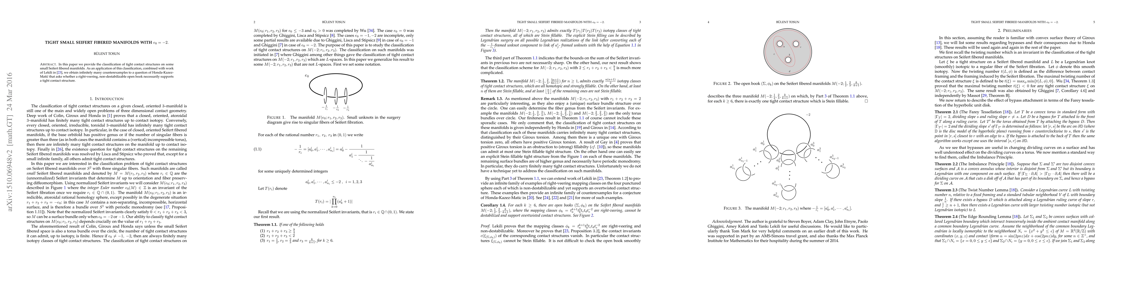 This paper classifies tight contact structures on specific small Seifert fibered manifolds with $e_0=-2$ and uses this classification to produce infinite counterexamples to a question by Honda-Kazez-Matić regarding the support of tight contact structures by right-veering, non-destabilizable open books.