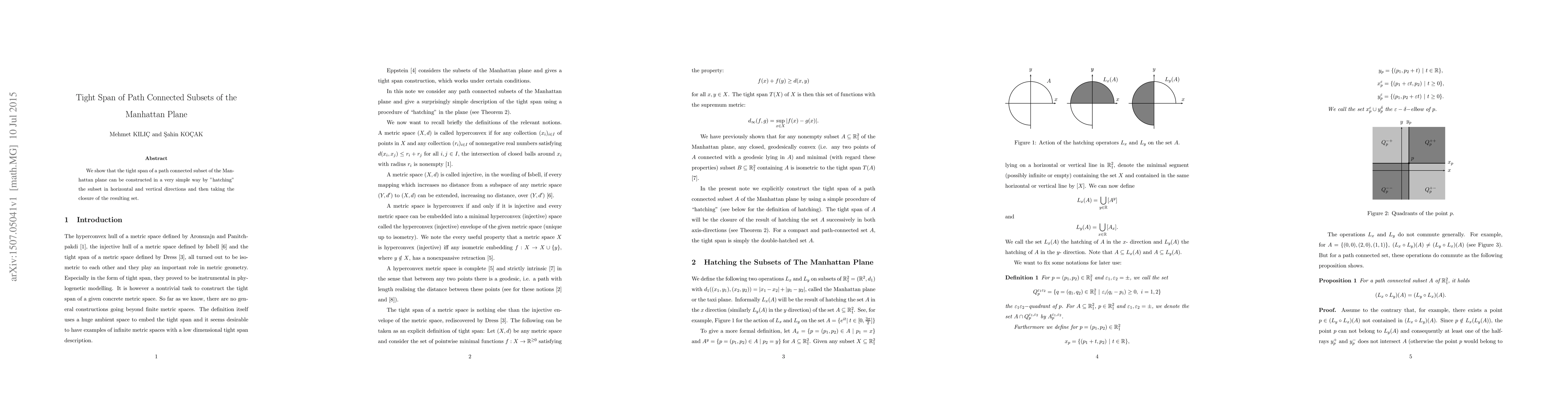 Summary: This paper demonstrates that the tight span of a path-connected subset in the Manhattan plane can be efficiently constructed by hatching the subset horizontally and vertically, followed by taking the closure of the resulting set. This method simplifies the computation of the tight span.